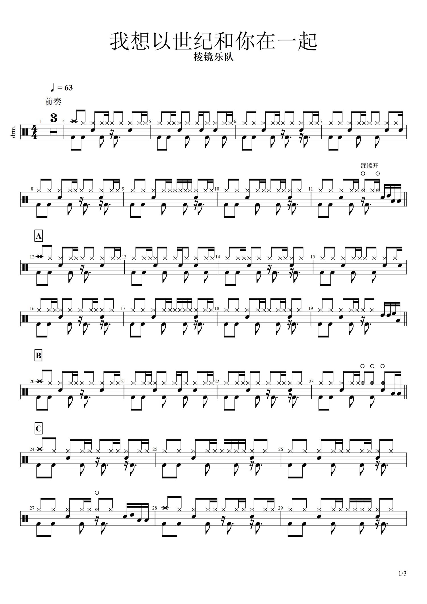 • 我想以世纪和你在一起鼓谱 - 棱镜乐队 - 架子鼓谱第1张