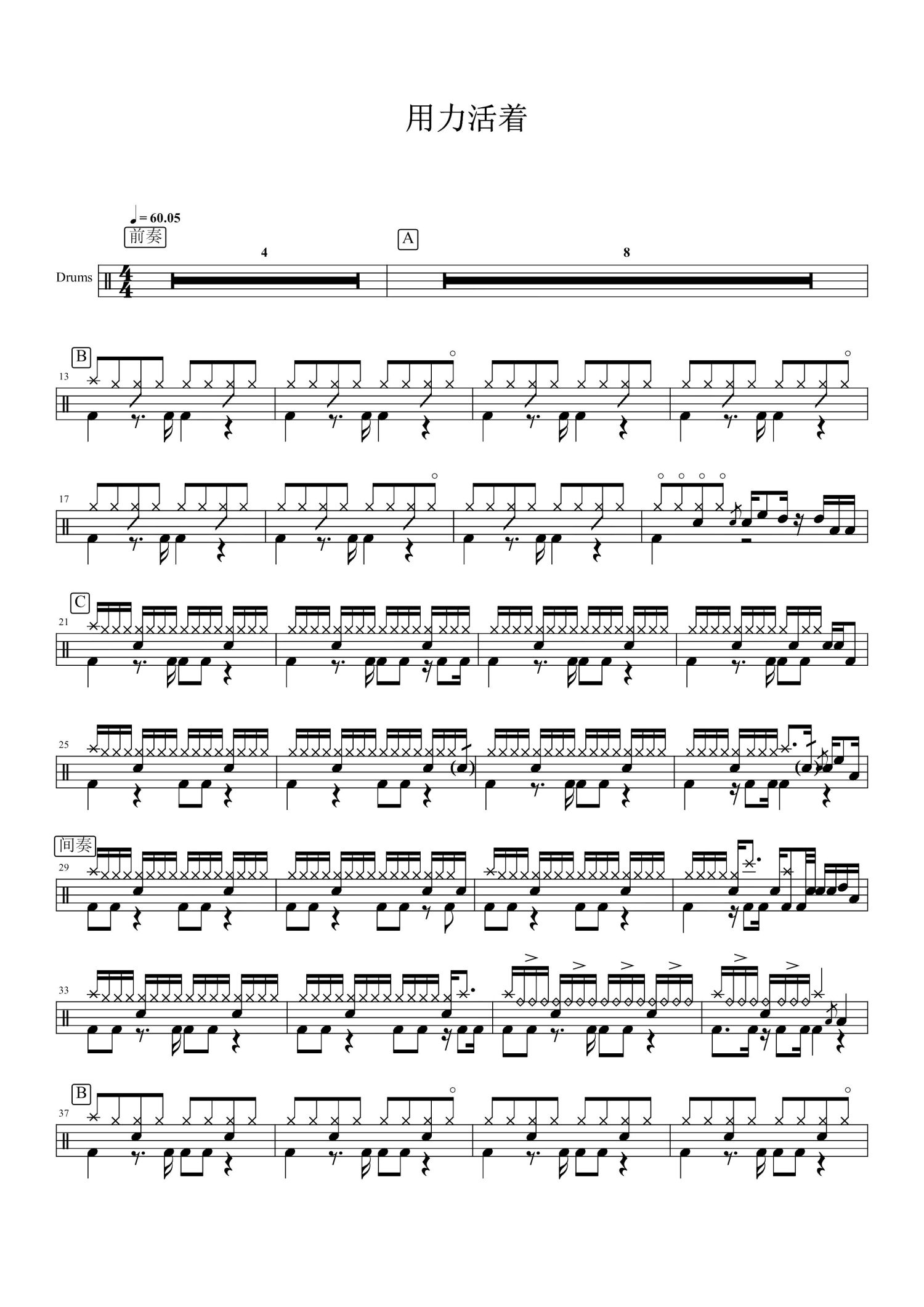 当前位置:琴谱网>架子鼓谱>用力活着