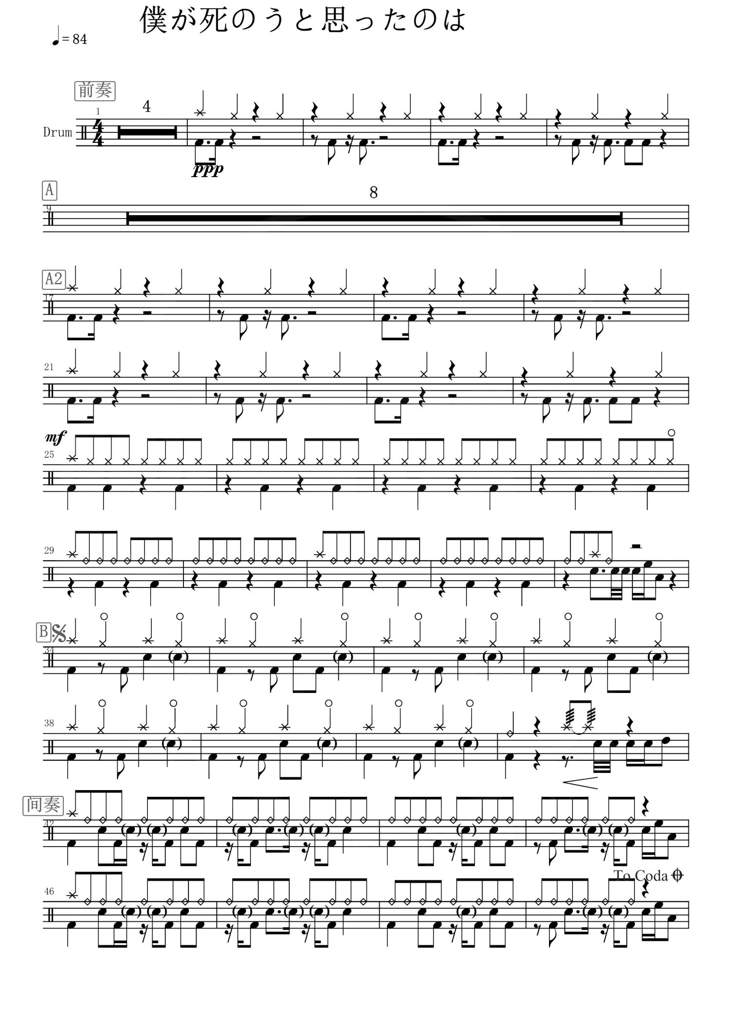 • 曾经我也想过一了百了鼓谱 - 中岛美嘉 - 架子鼓谱第1张