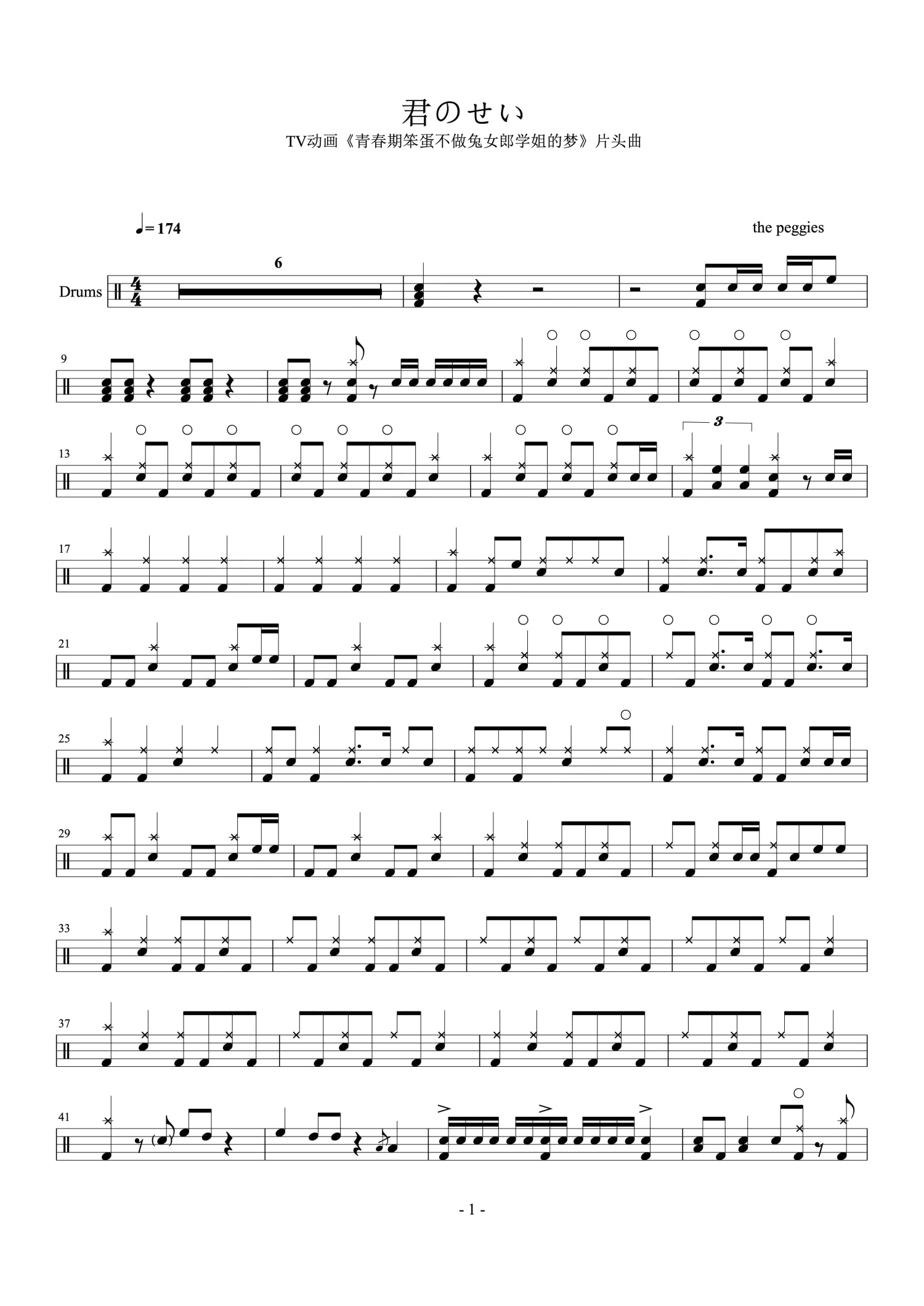 • 君のせい鼓谱 - the peggies - 架子鼓谱第1张