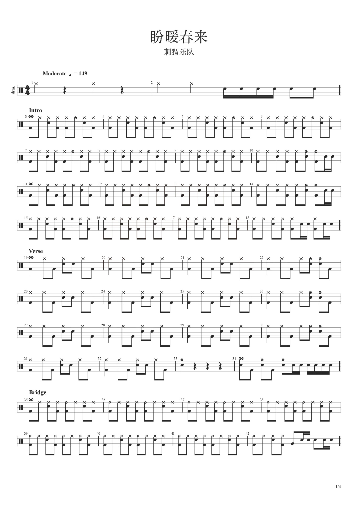 • 盼暖春来鼓谱 - 刺猬乐队 - 架子鼓谱第1张