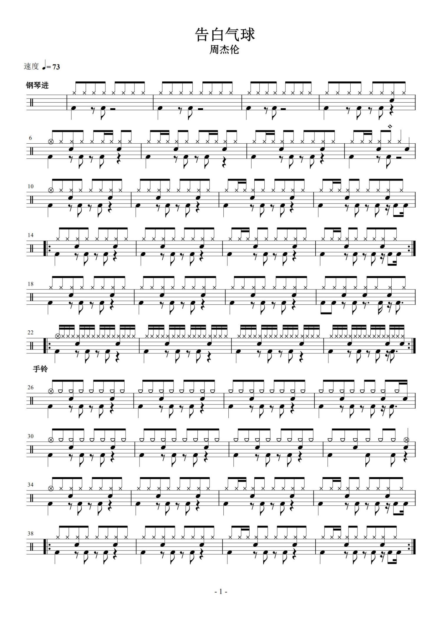 • 告白气球鼓谱 - 周杰伦 - 架子鼓谱第1张
