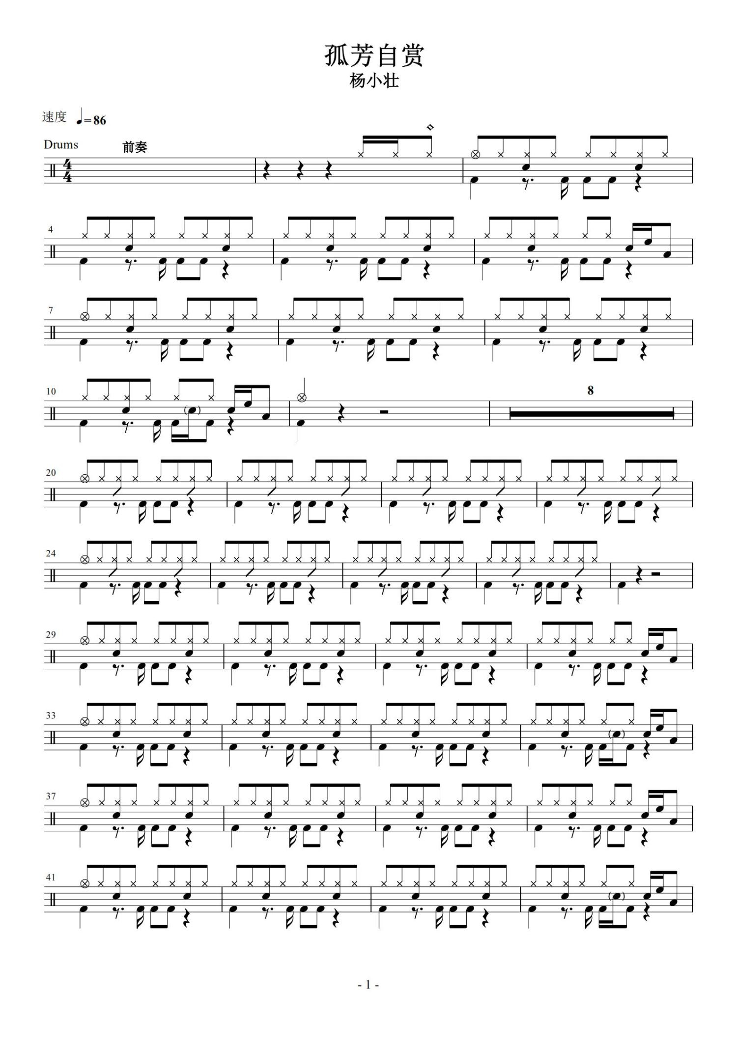 • 孤芳自赏鼓谱 - 杨小壮 - 架子鼓谱第1张
