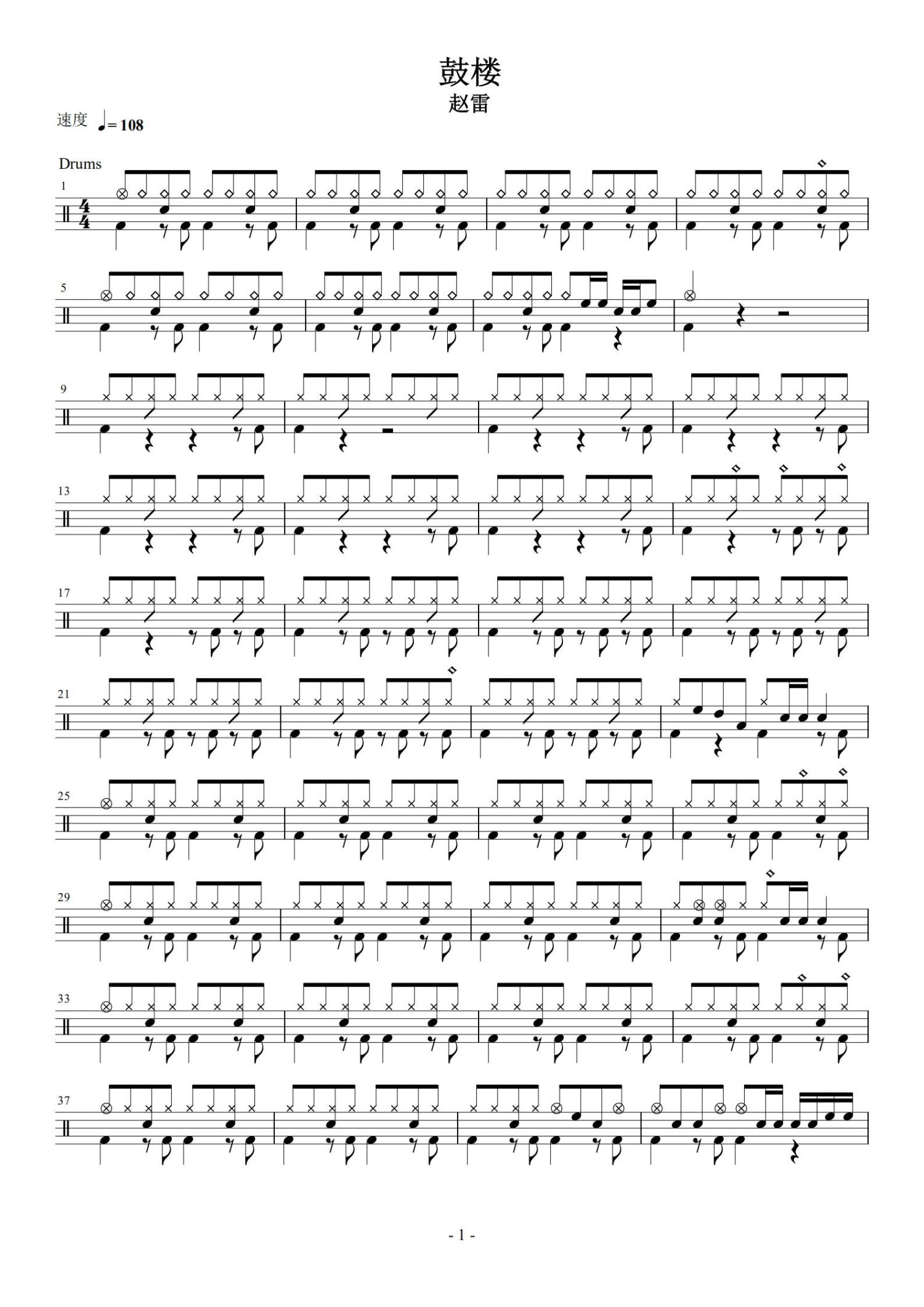 • 鼓楼鼓谱 - 赵雷 - 架子鼓谱第1张
