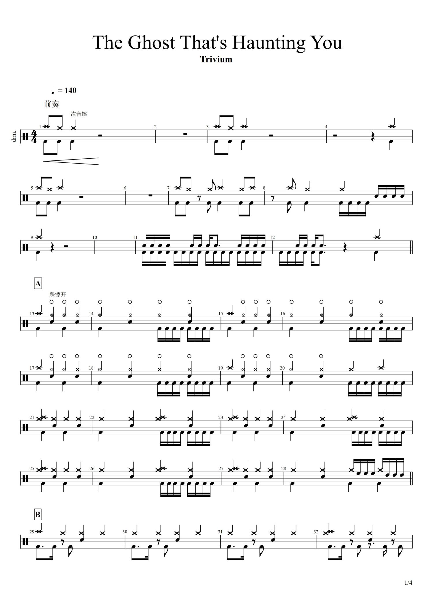The Ghost That’s Haunting You鼓谱 - Trivium - 架子鼓谱