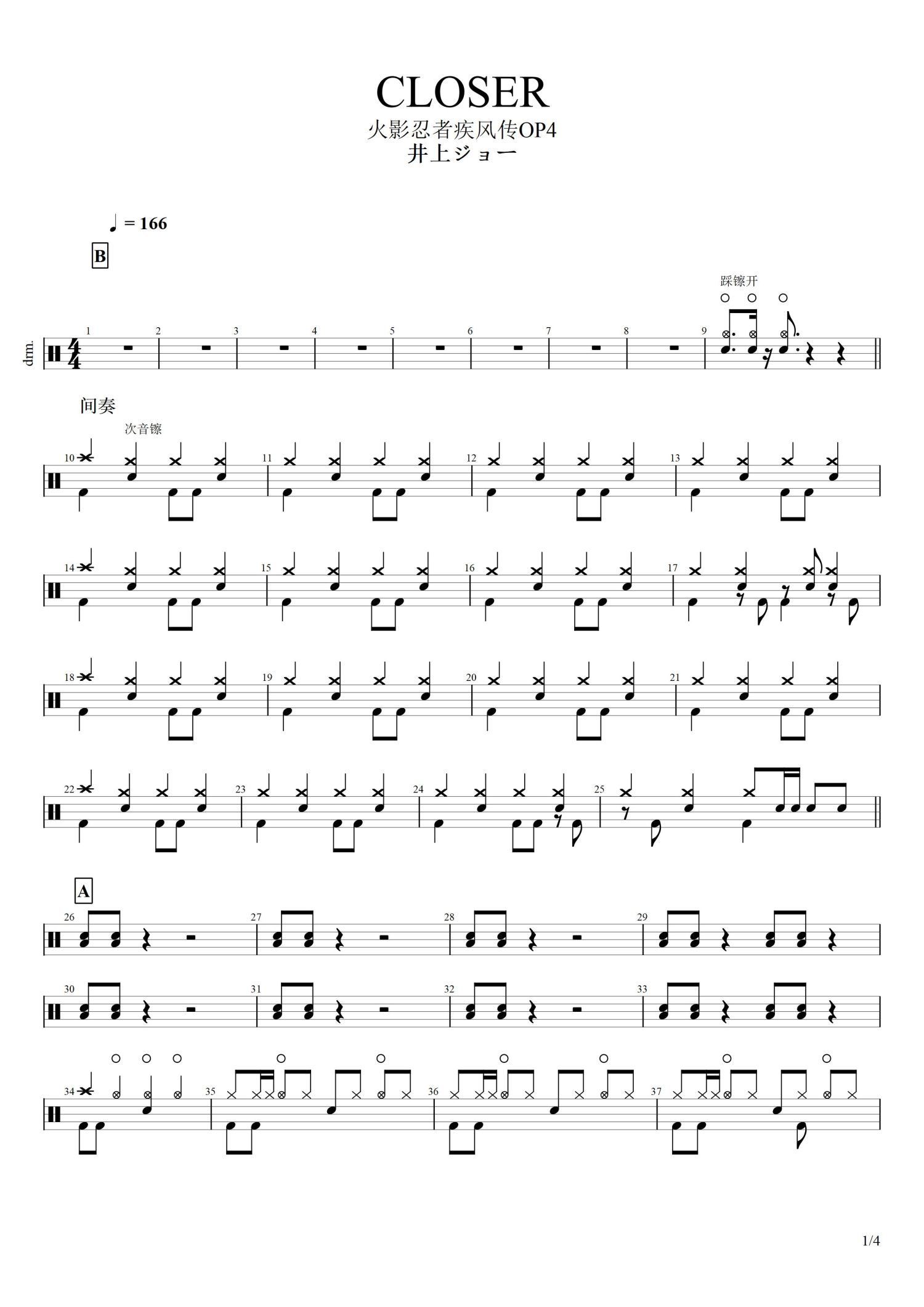 • Closer鼓谱 - 井上ジョー - 架子鼓谱第1张