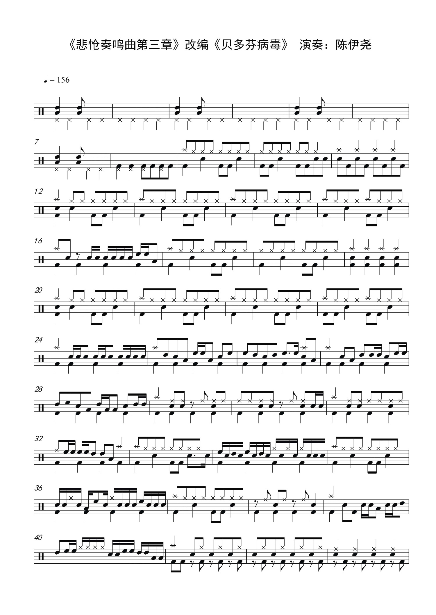 贝多芬病毒鼓谱 - 陈伊尧 - 架子鼓谱