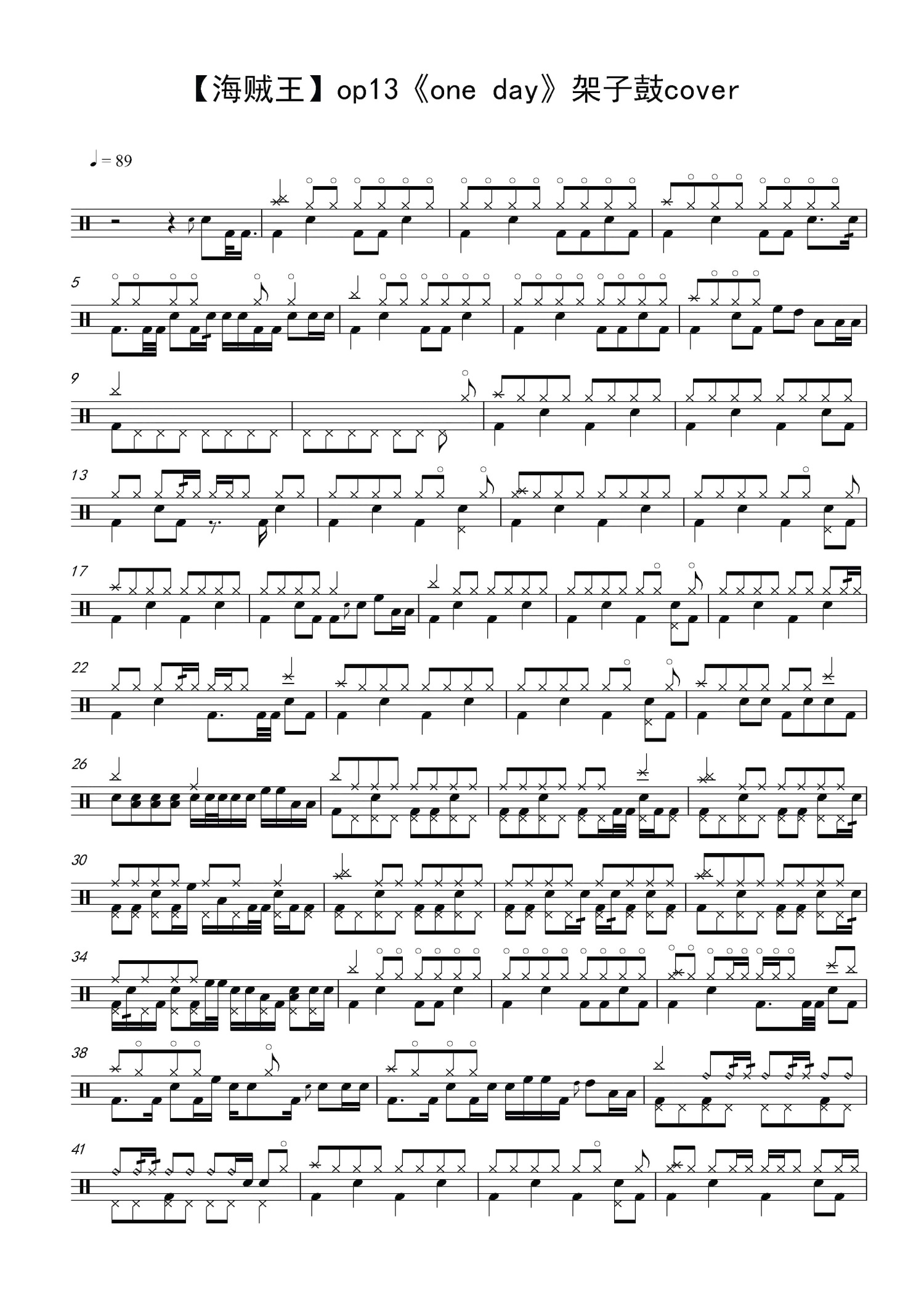 • one day(海贼王)鼓谱 - 内藤晴久 - 架子鼓谱第1张