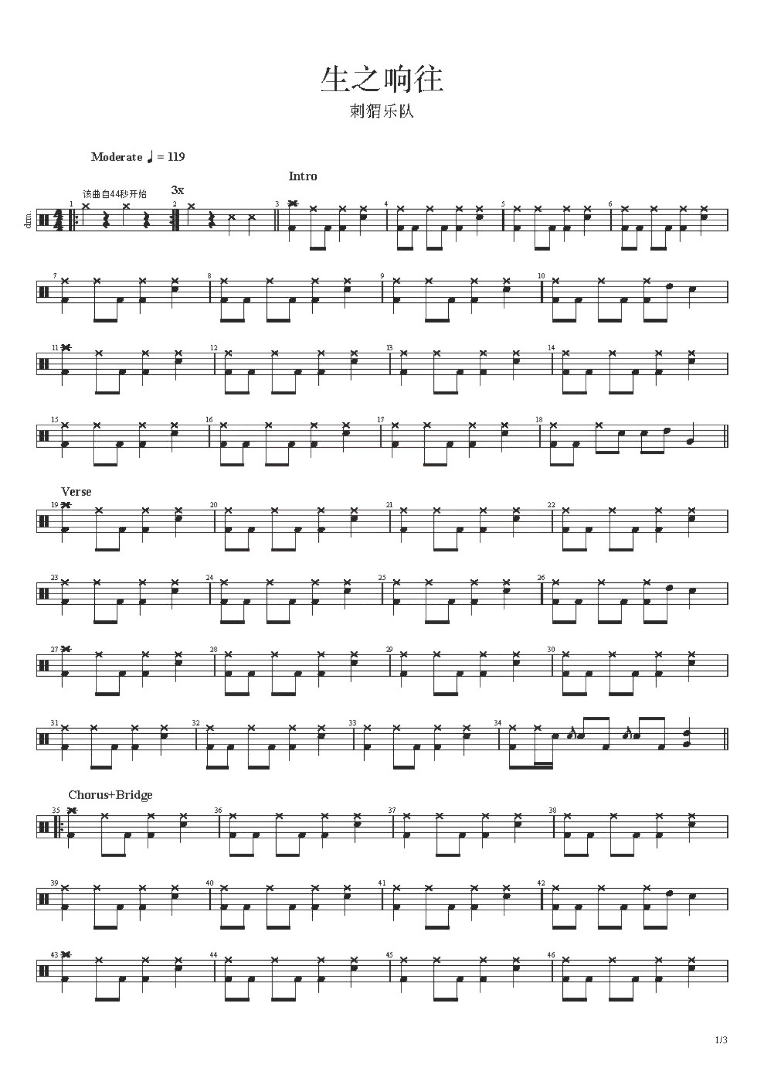 • 生之向往鼓谱 - 刺猬乐队 - 架子鼓谱第1张