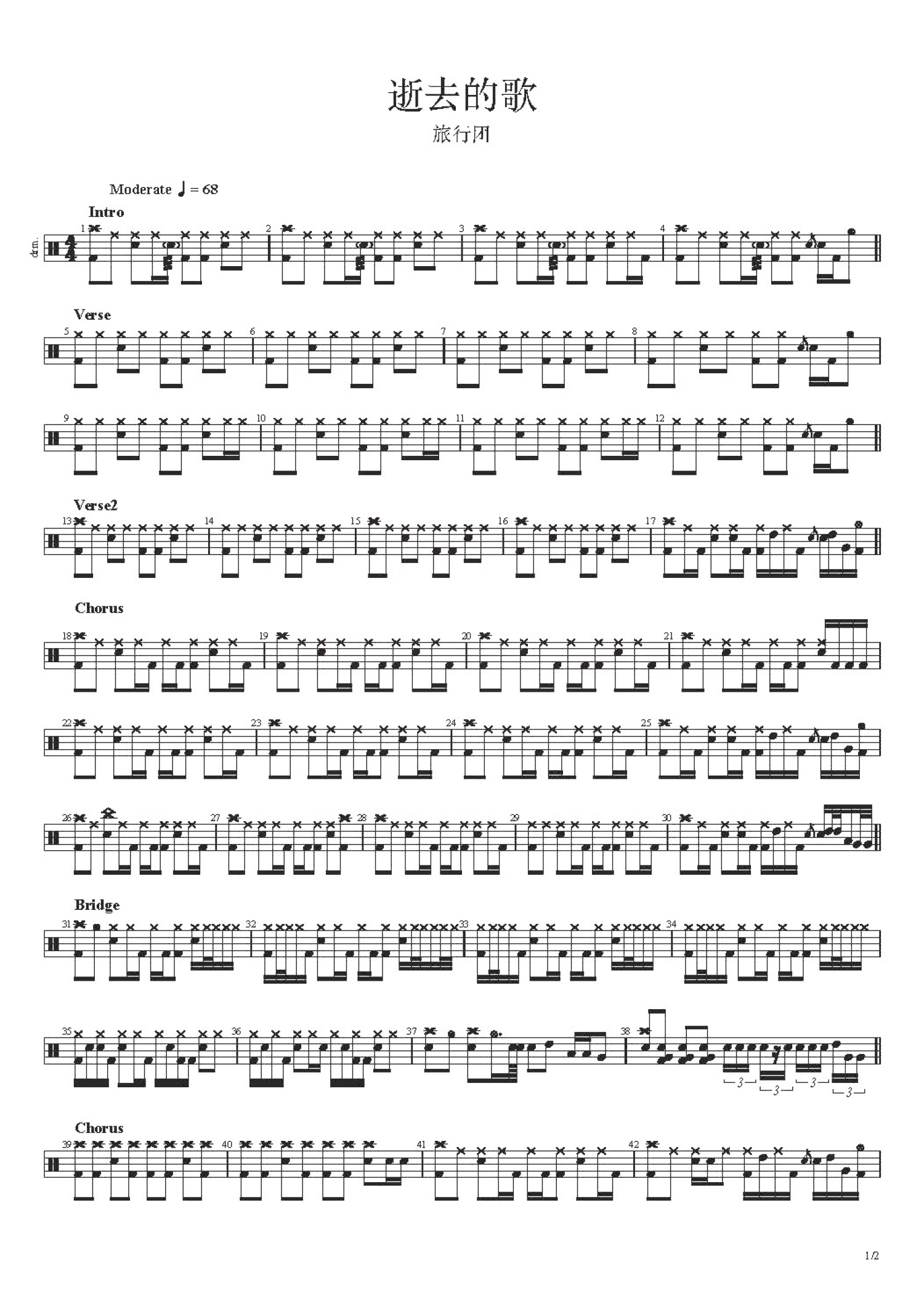 • 逝去的歌鼓谱 - 旅行团乐队 - 架子鼓谱第1张