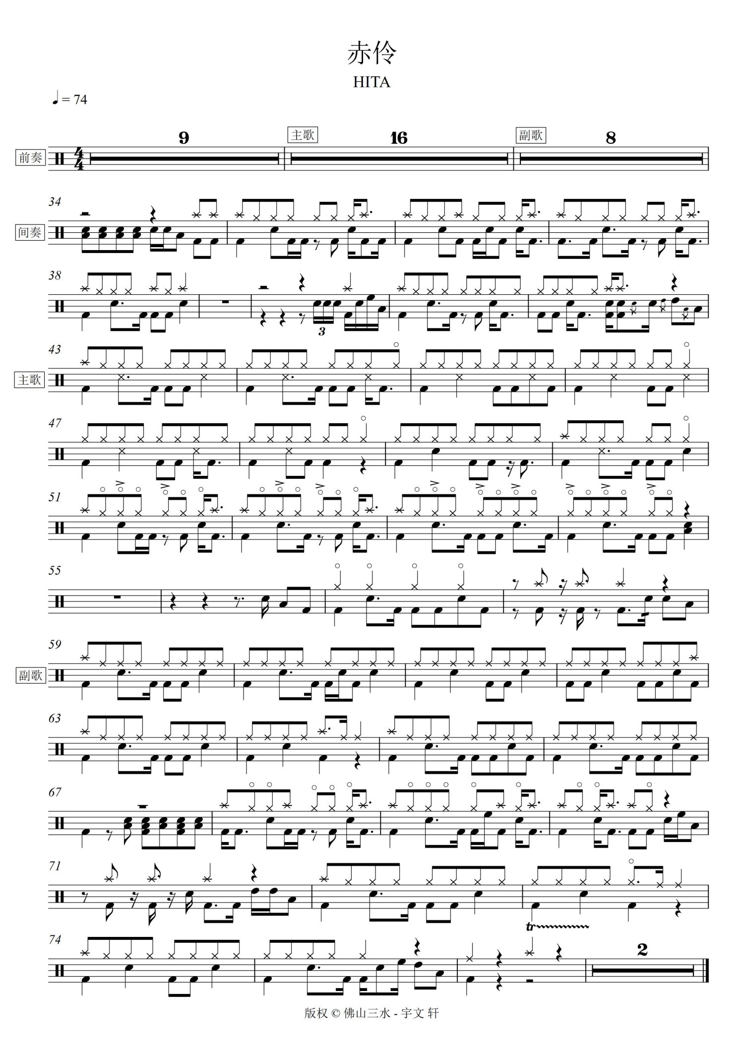 架子鼓谱原调来源:佛山三水 - 宇文轩689 浏览2022-05-10 21:40发布图谱共1页
