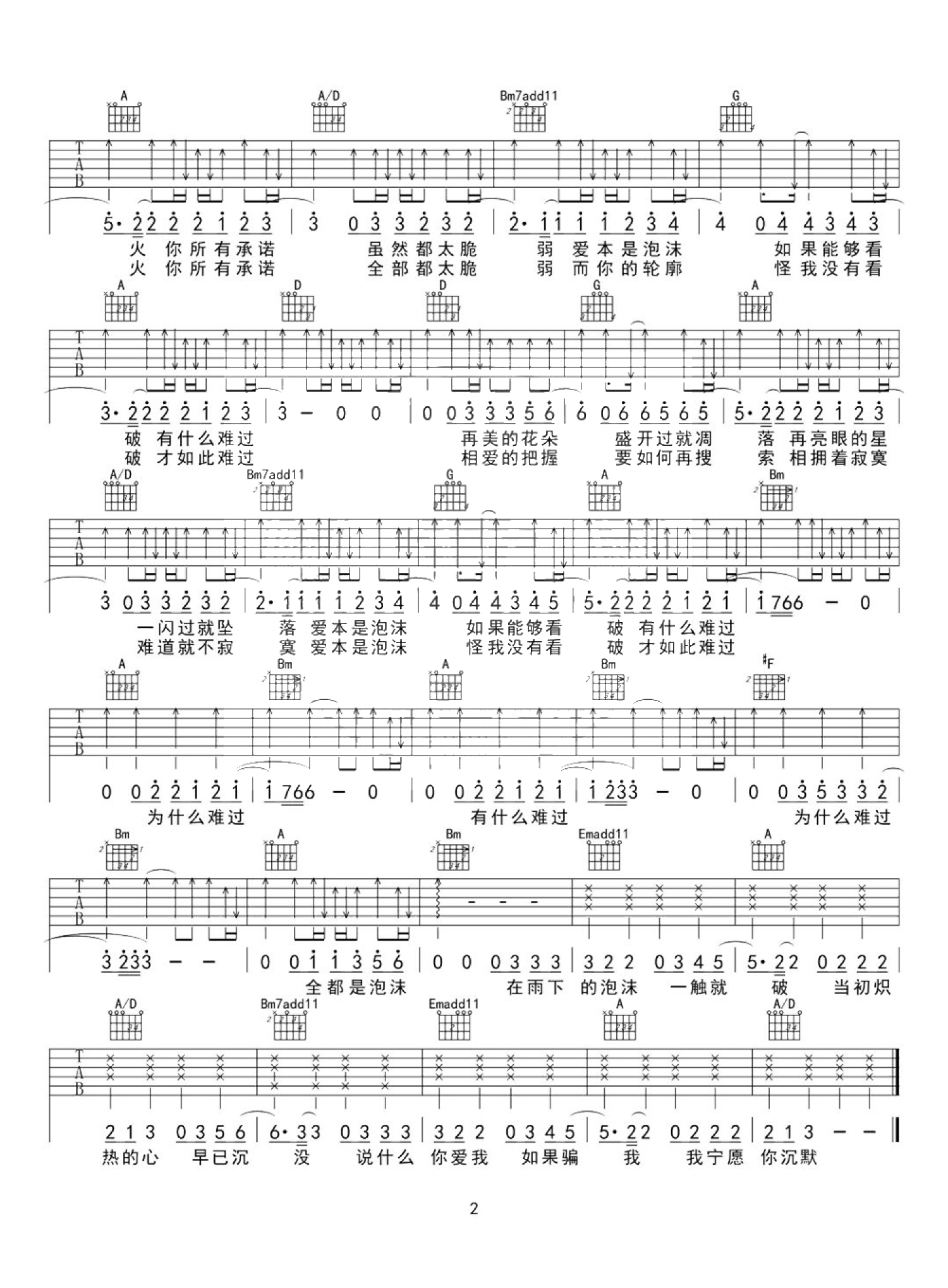 当前位置:琴谱网>吉他弹唱>泡沫