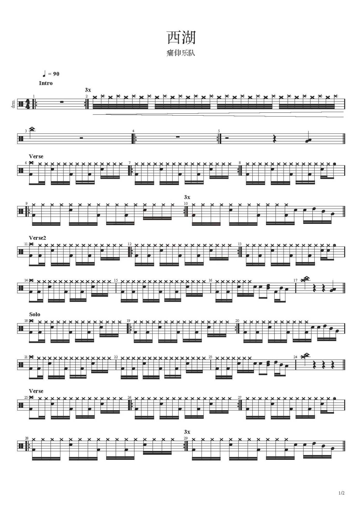 • 西湖鼓谱 - 痛仰乐队 - 架子鼓谱第1张