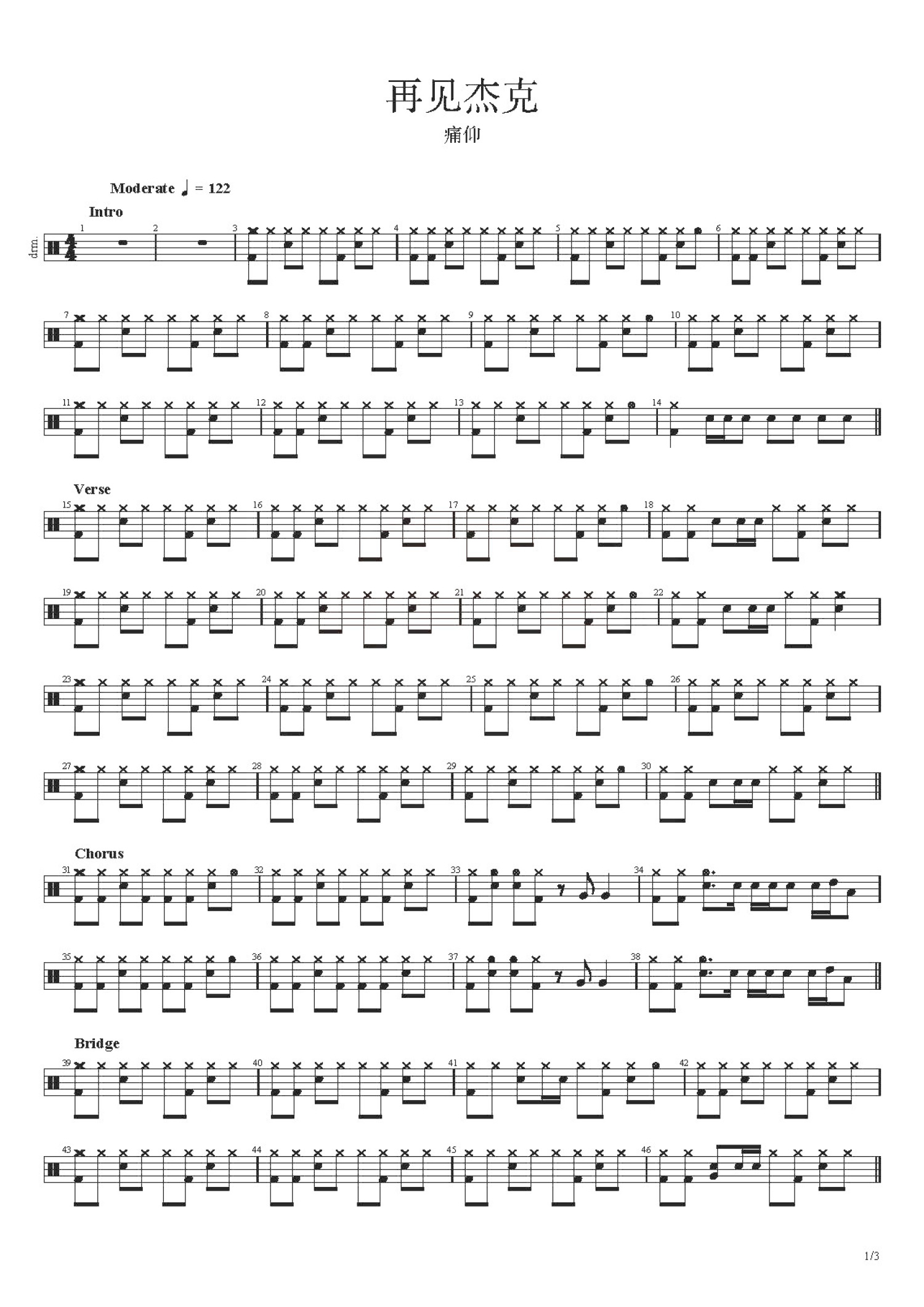 • 再见杰克鼓谱 - 痛仰乐队 - 架子鼓谱第1张