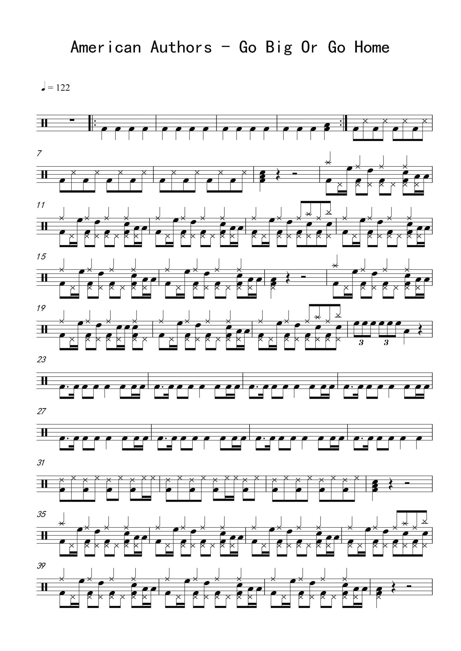 • Go Big or Go Home鼓谱 - American Authors - 架子鼓谱第1张