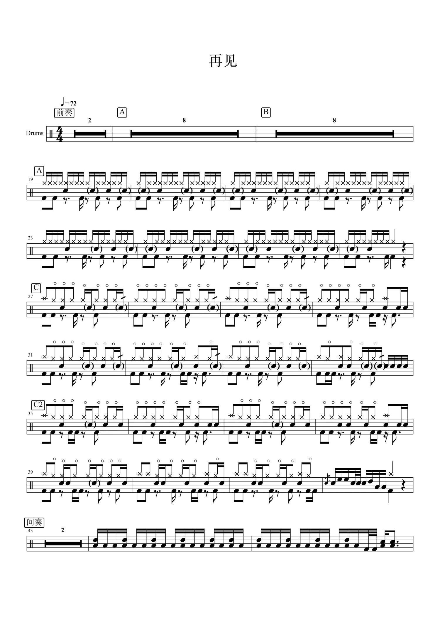 当前位置:琴谱网>架子鼓谱>再见