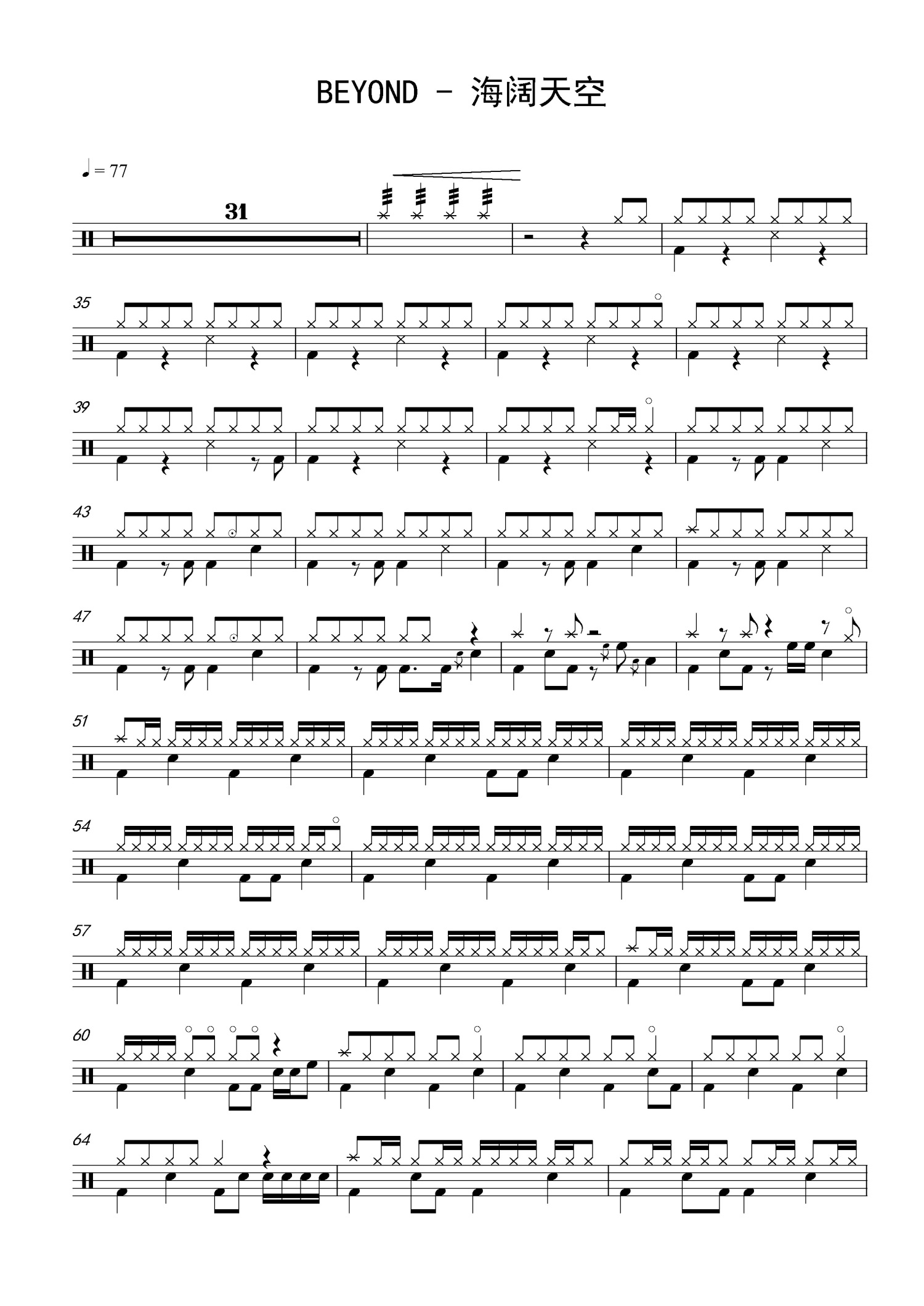 • 海阔天空鼓谱 - Beyond - 架子鼓谱第1张