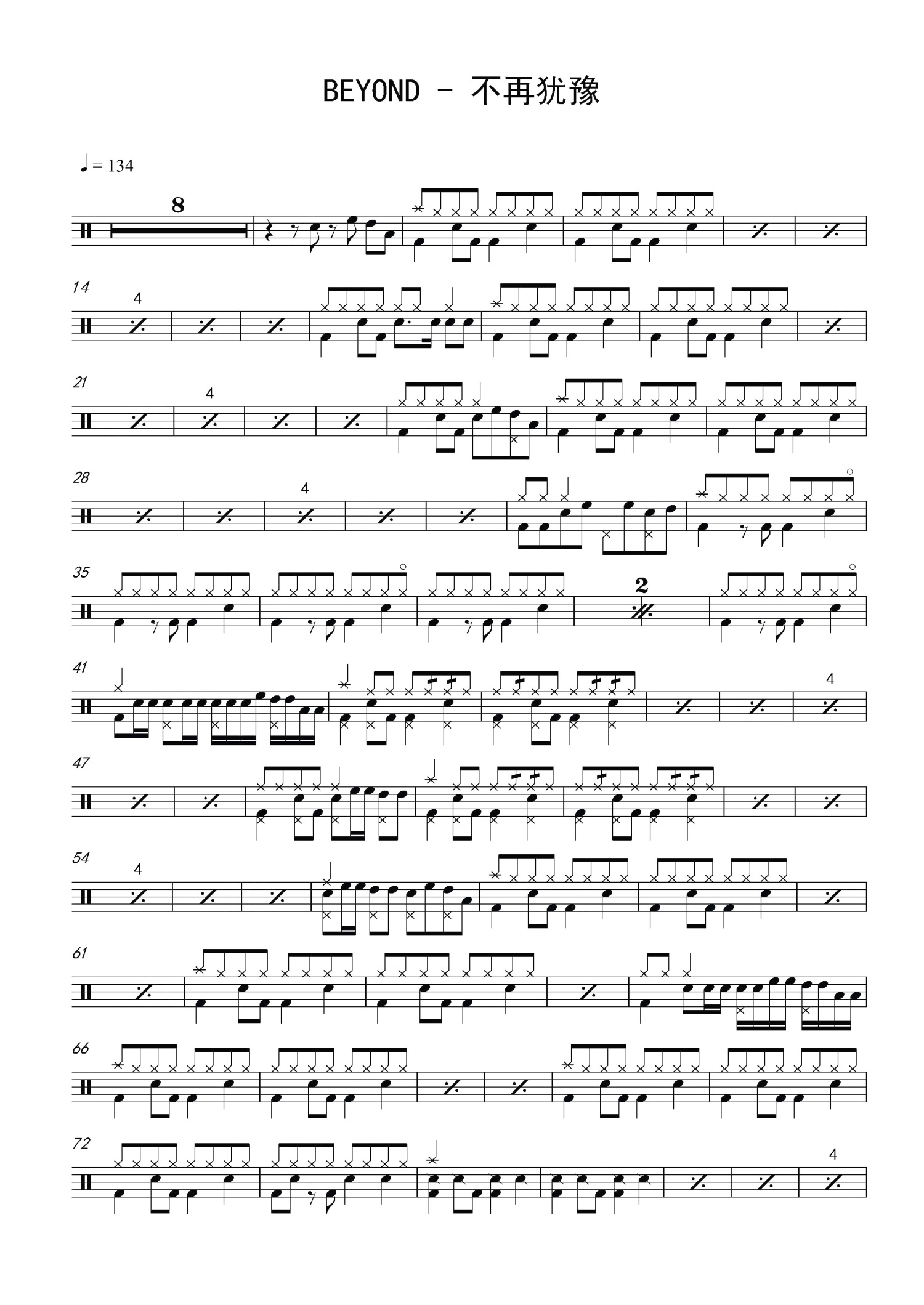 • 不再犹豫鼓谱 - Beyond - 架子鼓谱第1张