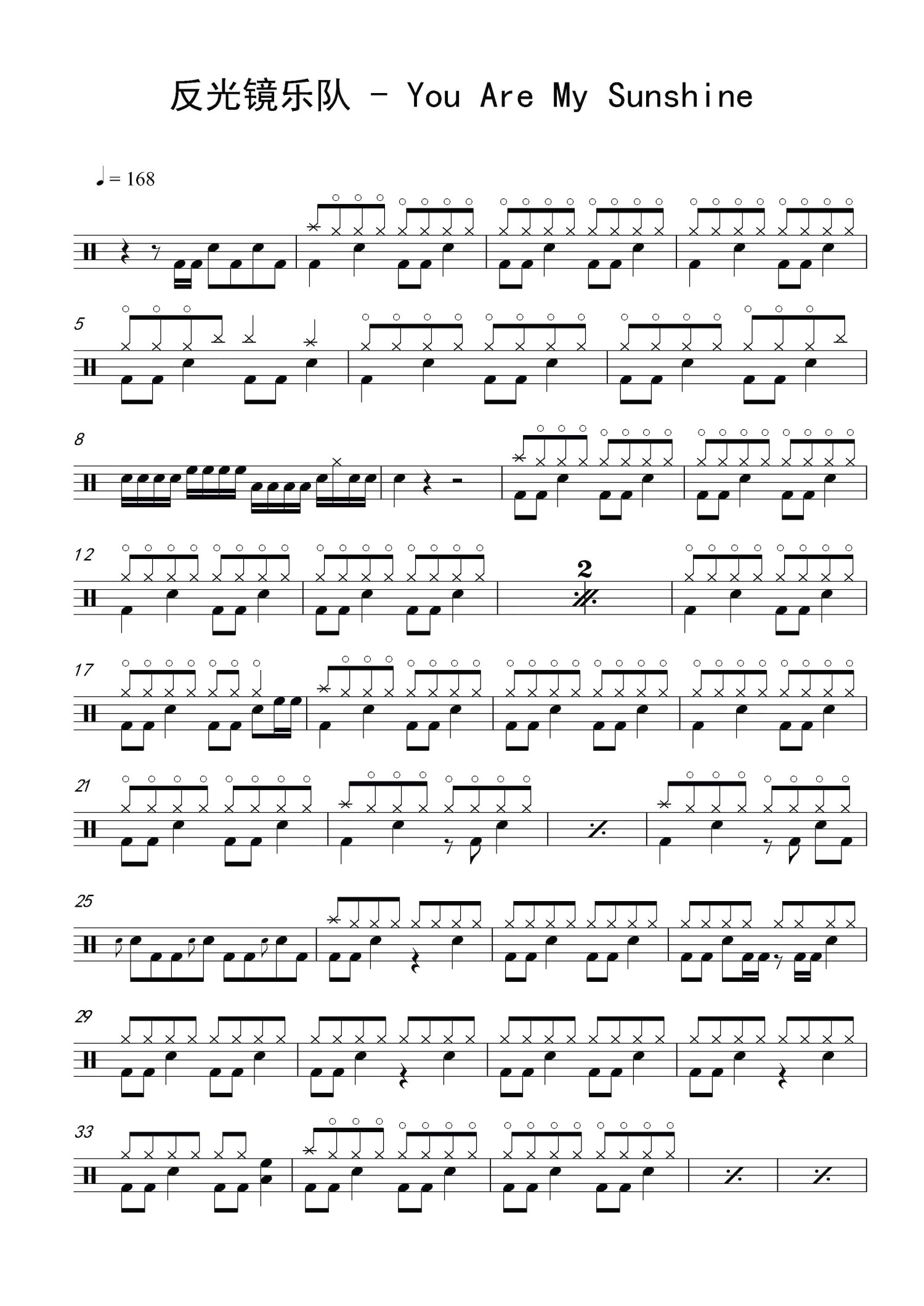 • You Are My Sunshine鼓谱 - 反光镜乐队 - 架子鼓谱第1张