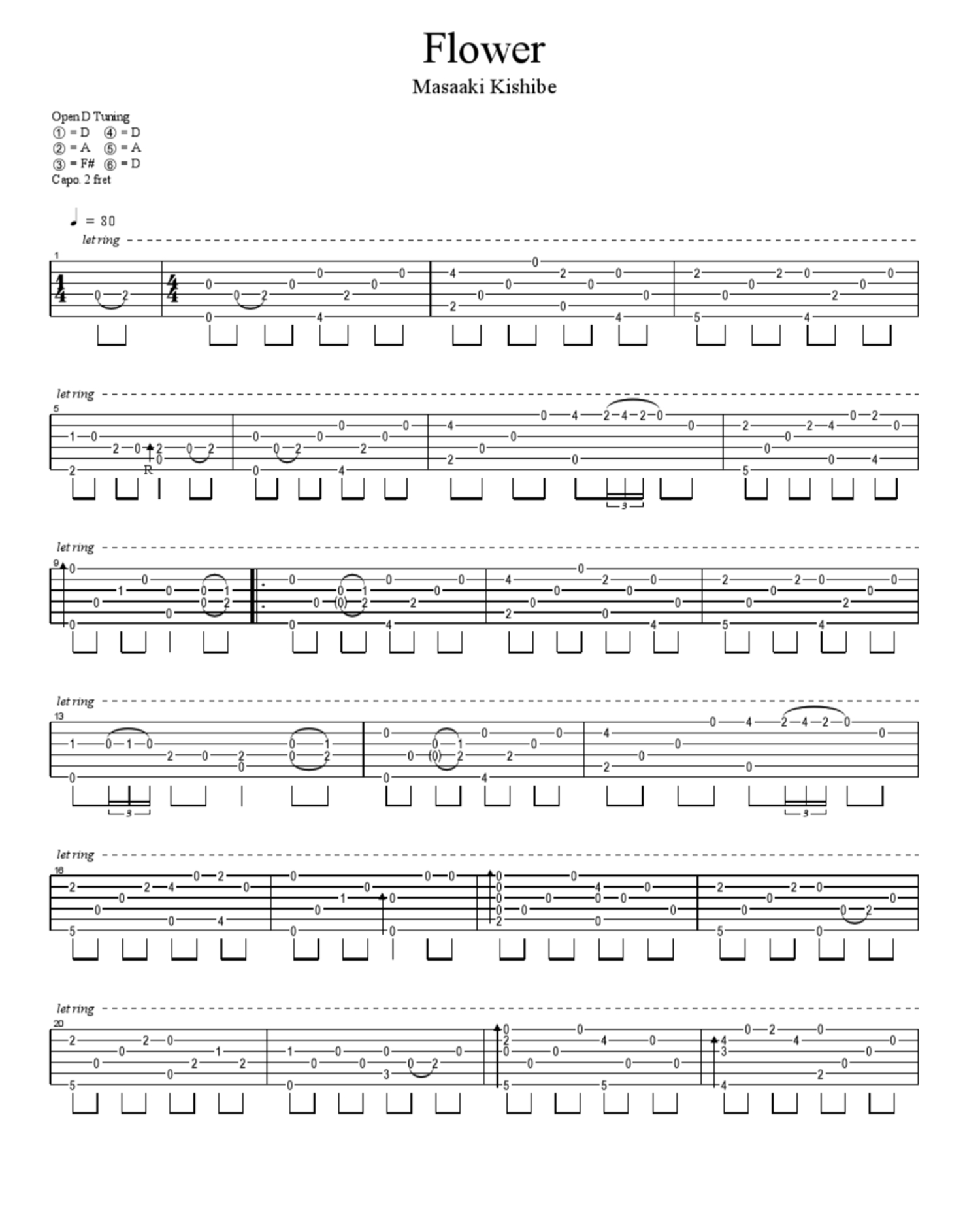 曲谱介绍: flower指弹谱