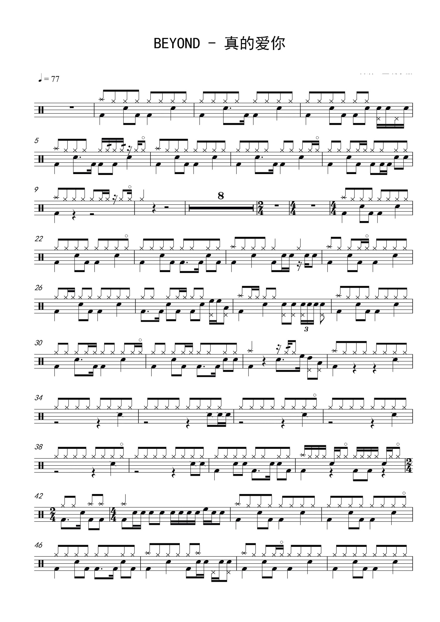 真的爱你鼓谱 - Beyond - 架子鼓谱