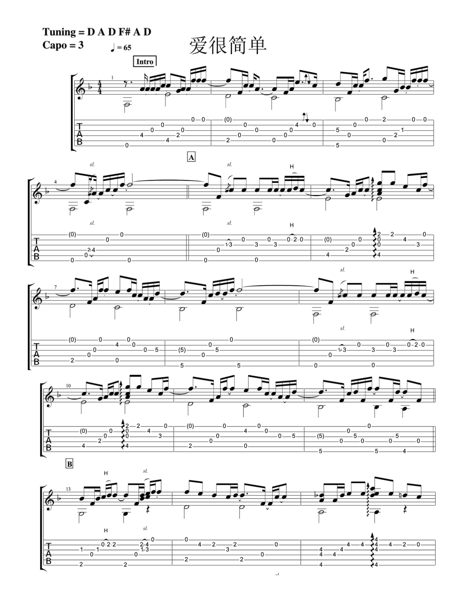 曲谱介绍: 爱很简单指弹谱
