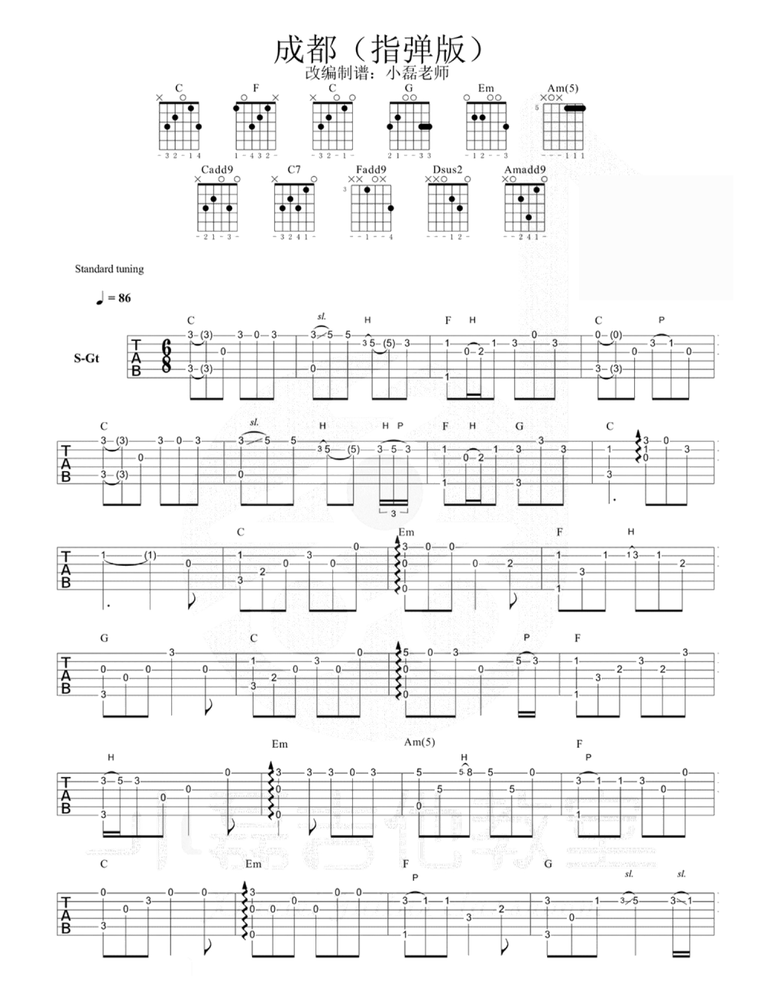曲谱介绍: 成都 指弹  小磊吉他版本