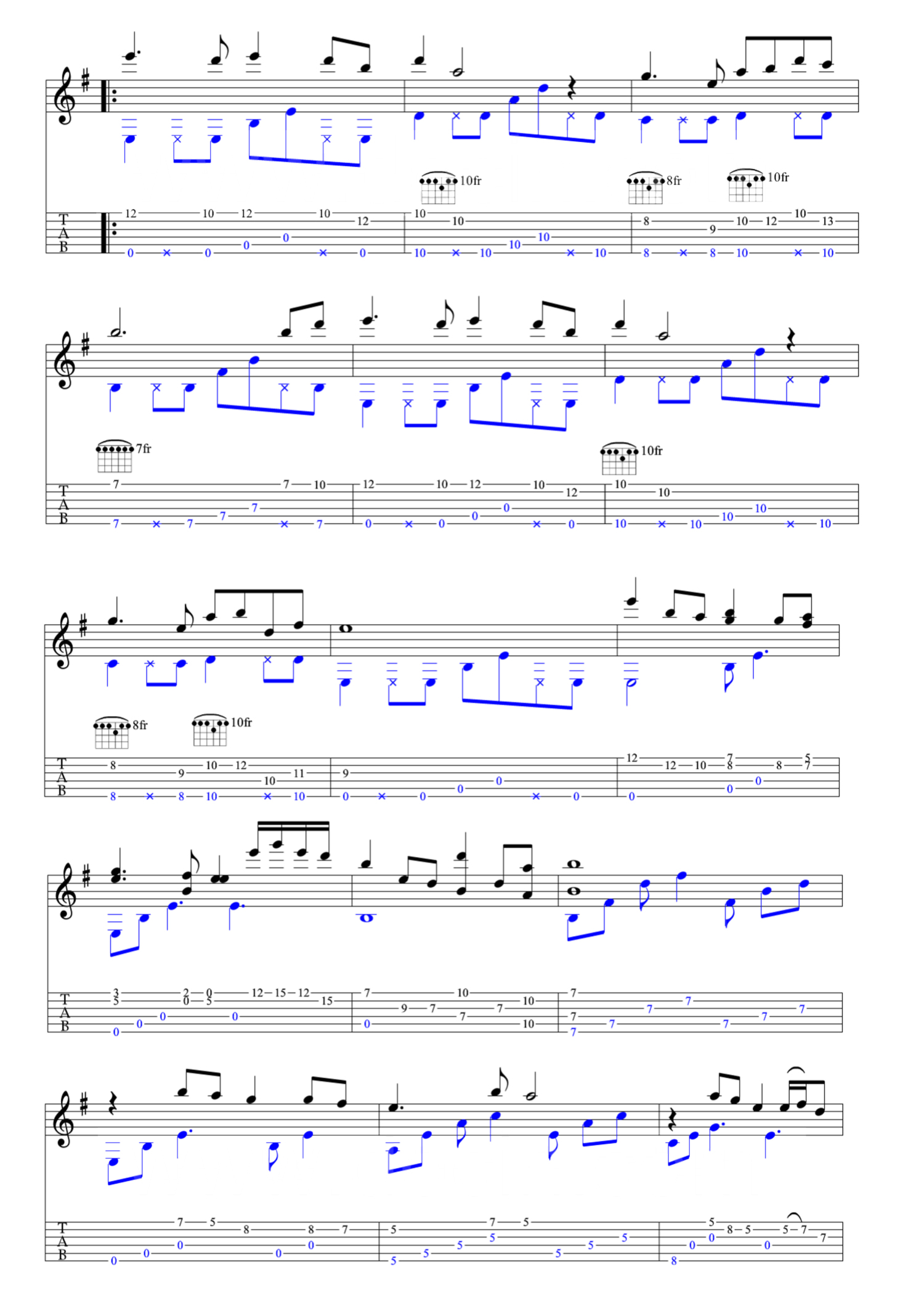 曲谱介绍: 铁血丹心指弹谱