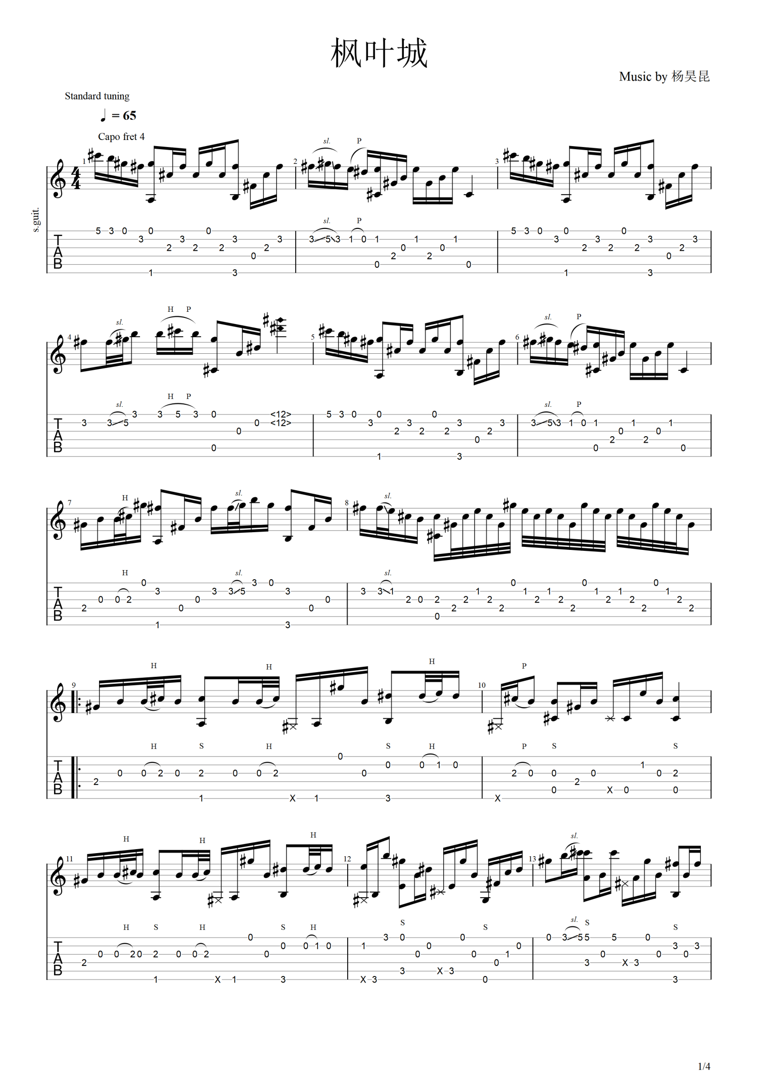 • 枫叶城吉他谱 - 杨昊昆 - 吉他独奏谱 - 带五线谱第1张