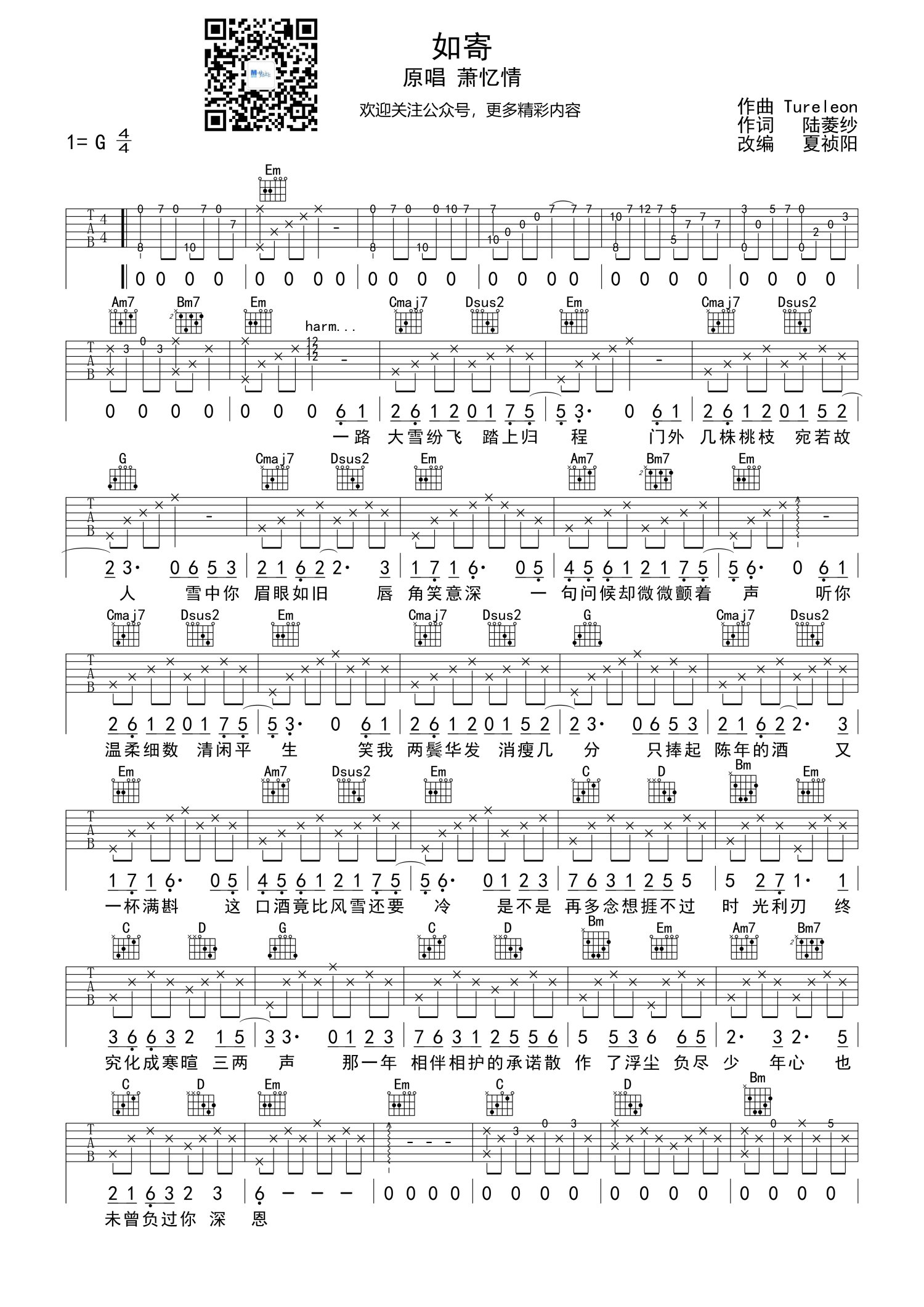 • 如寄吉他谱 - 萧忆情 - G调吉他弹唱谱第1张
