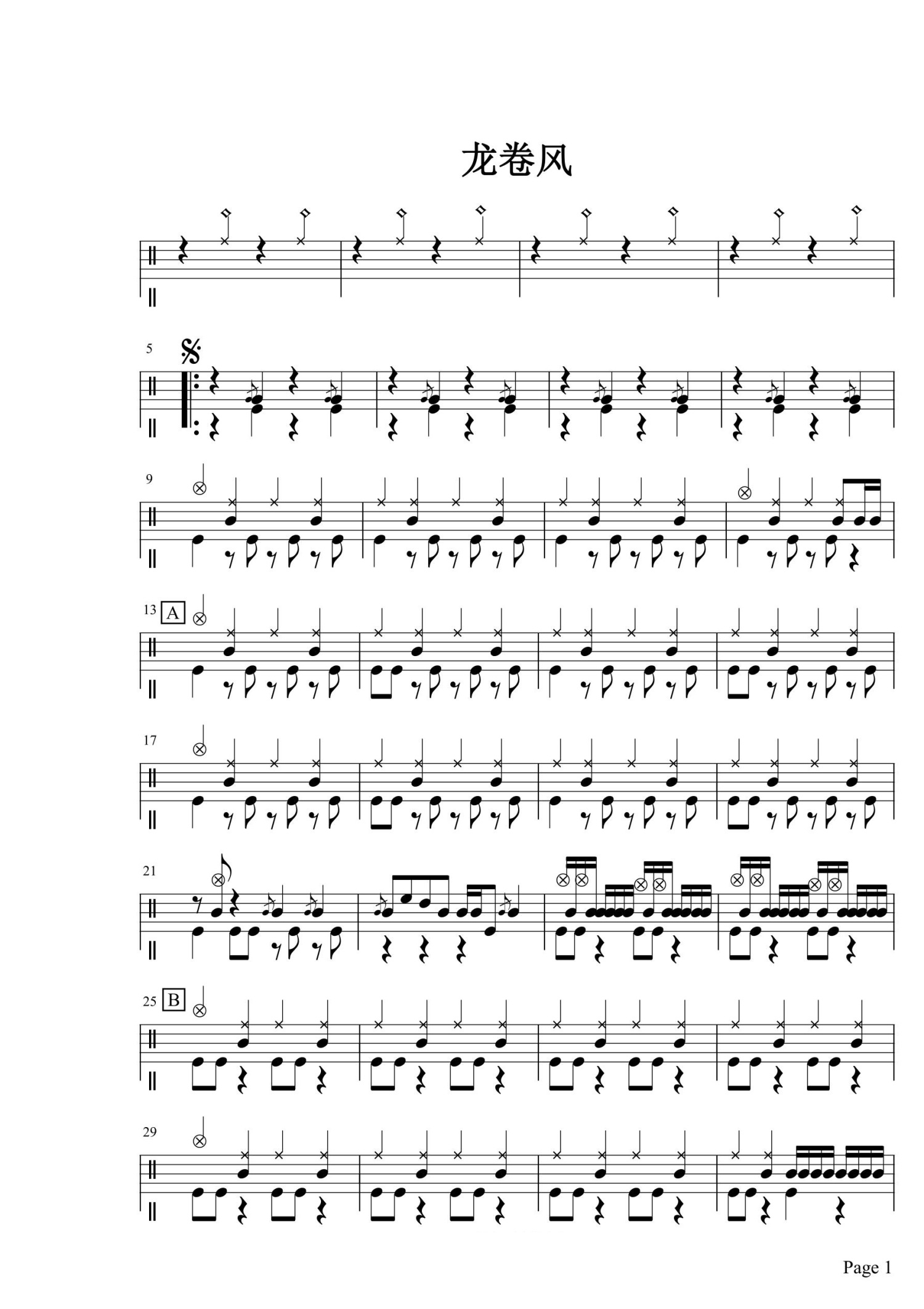 • 龙卷风鼓谱 - 五级考级曲目 - 架子鼓谱第1张