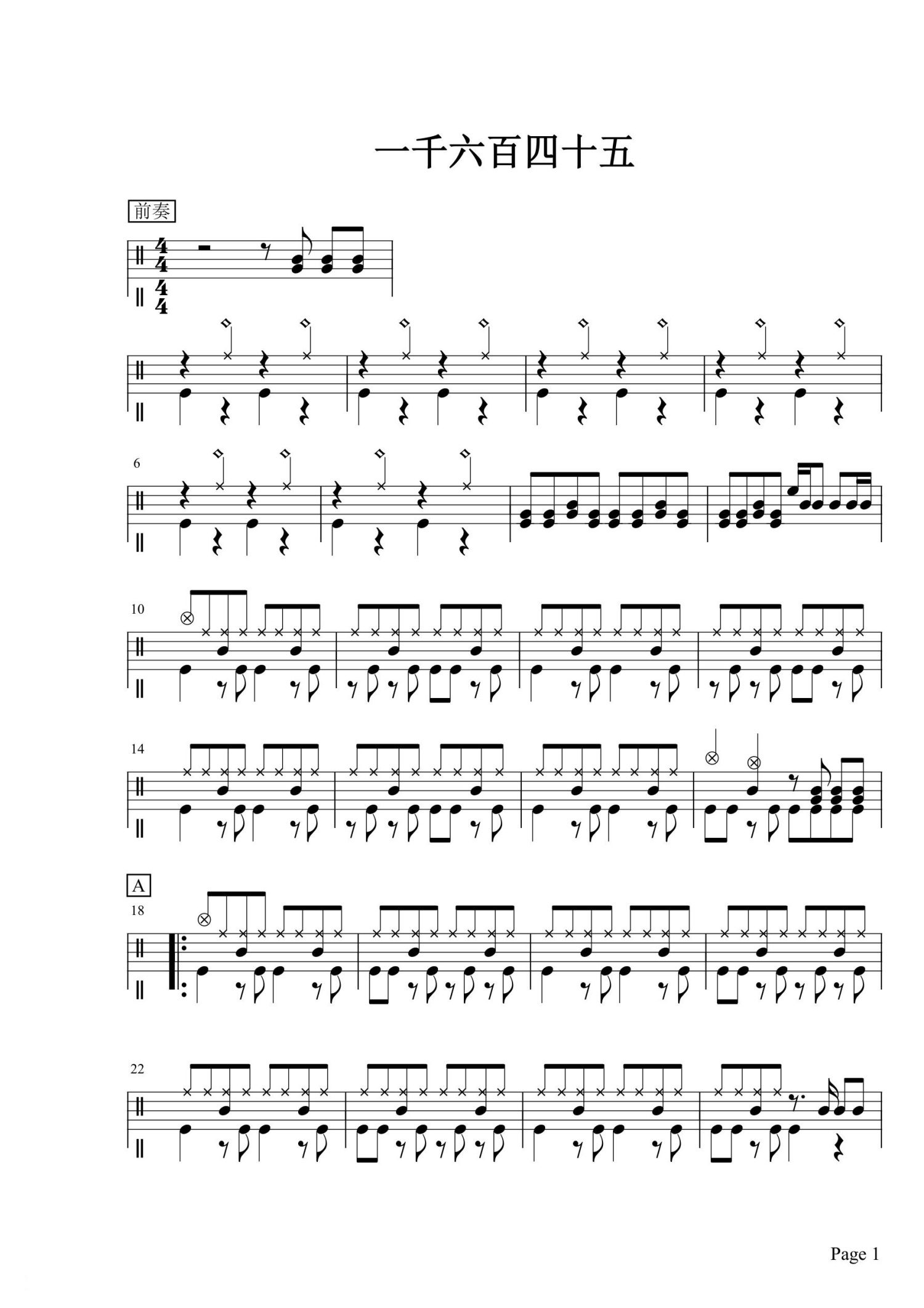当前位置:琴谱网>架子鼓谱>一千六百四十五