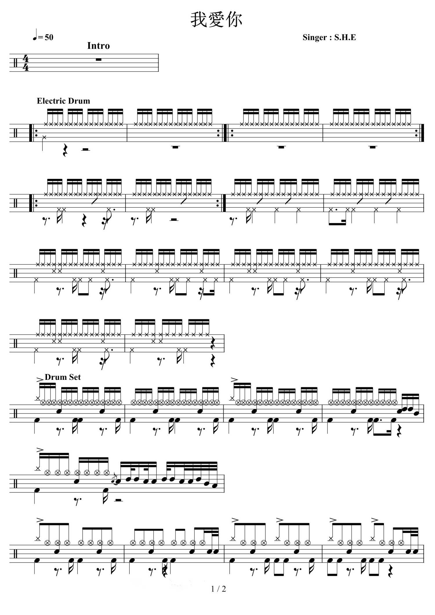 • 我爱你鼓谱 - S.H.E - 架子鼓谱第1张