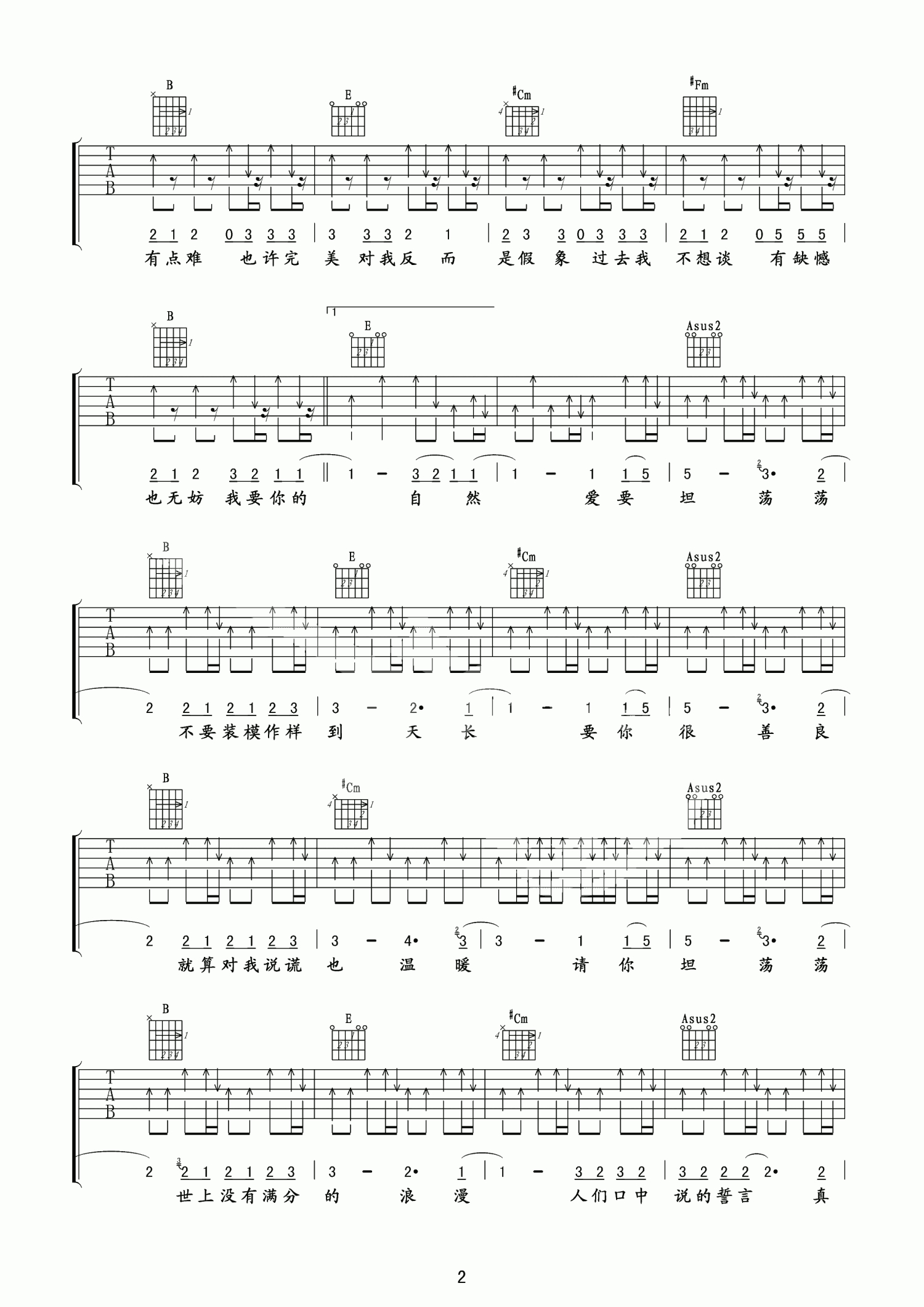 曲谱介绍: 丁丁 爱要坦荡荡吉他谱六线谱