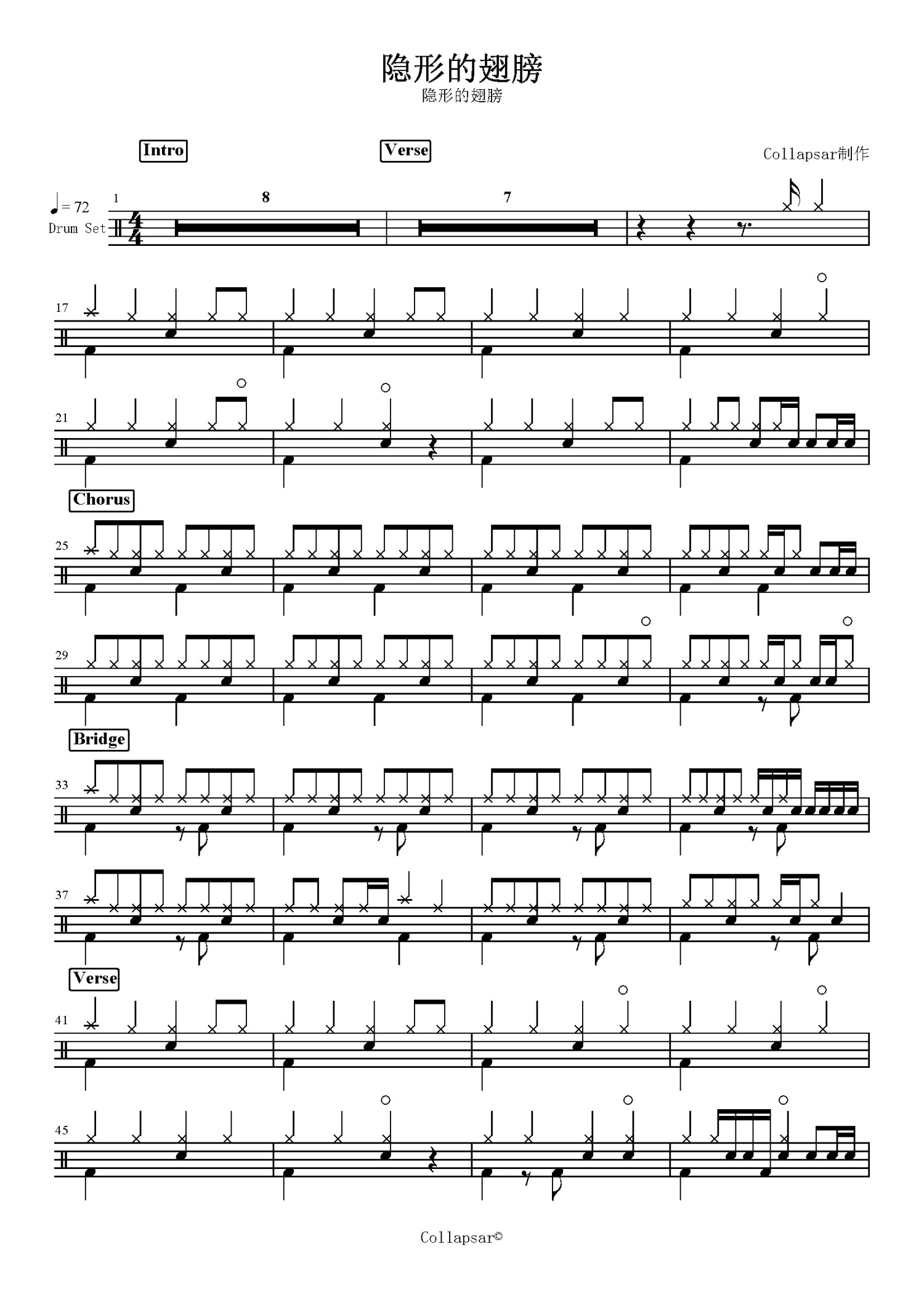 • 隐形的翅膀鼓谱 - 张韶涵 - 架子鼓谱第1张