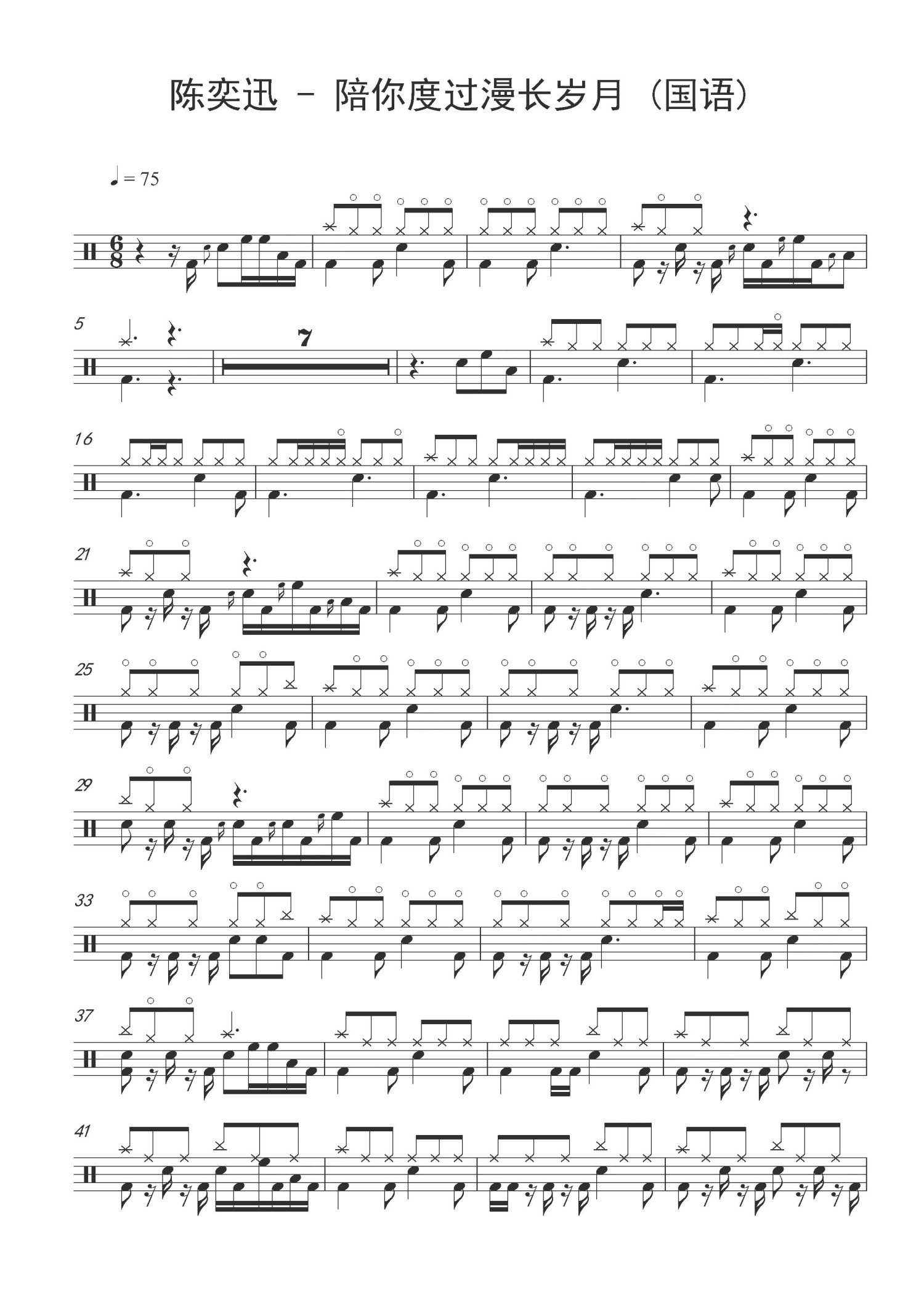 • 陪你度过漫长岁月鼓谱 - 陈奕迅 - 架子鼓谱第1张