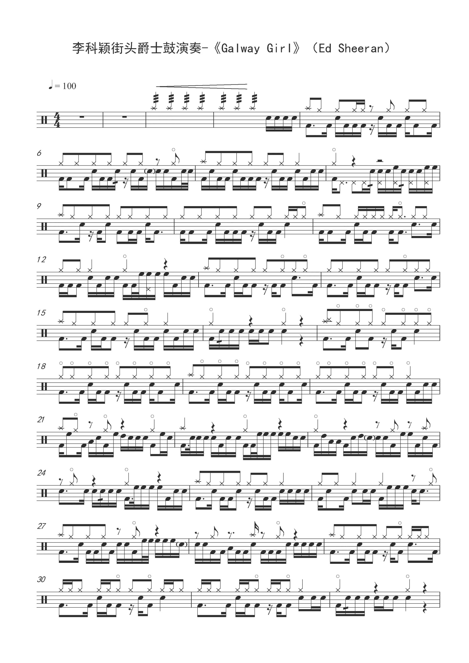 • Galway Girl鼓谱 - Ed Sheeran - 架子鼓谱第1张