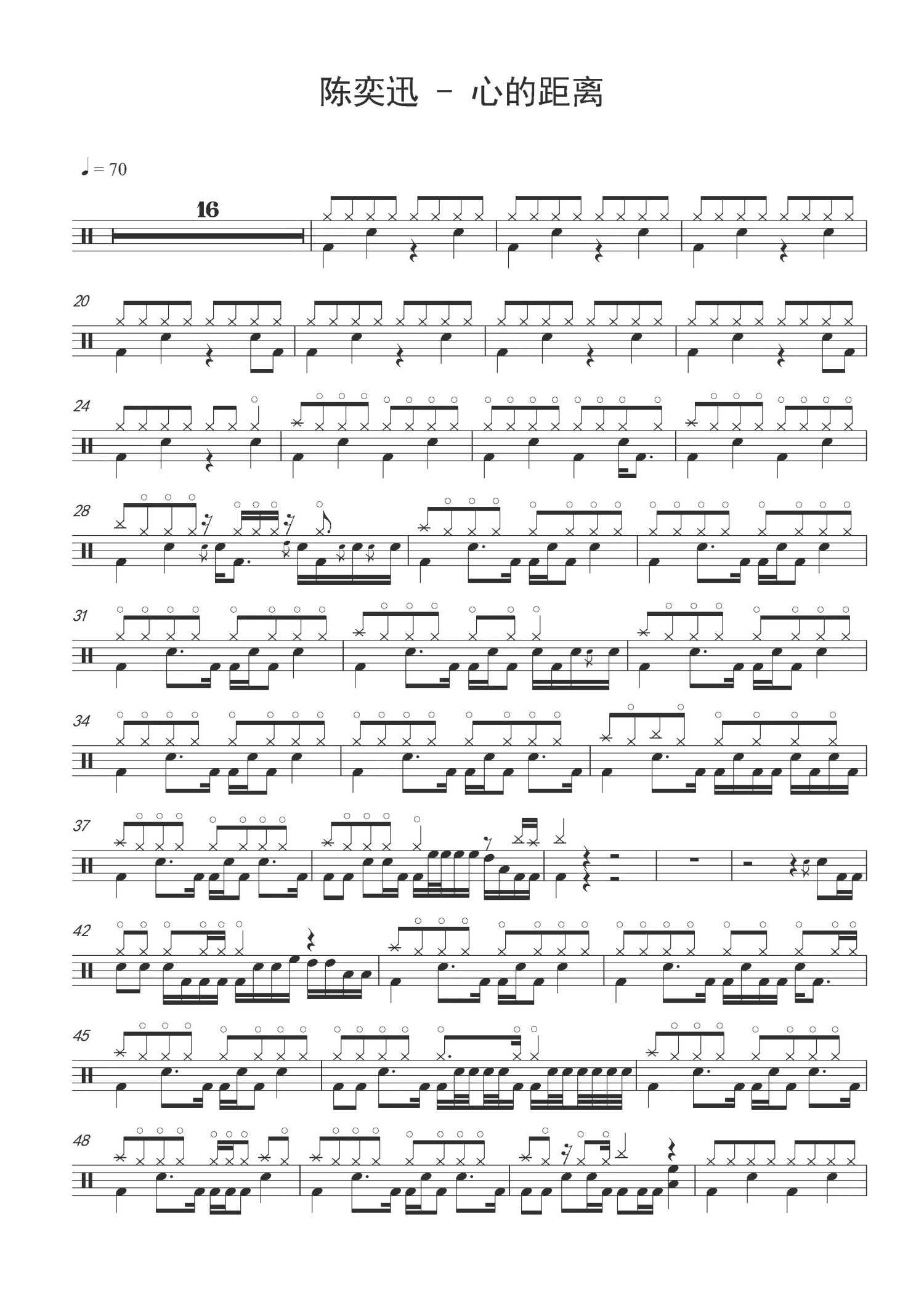 心的距离鼓谱 - 陈奕迅 - 架子鼓谱