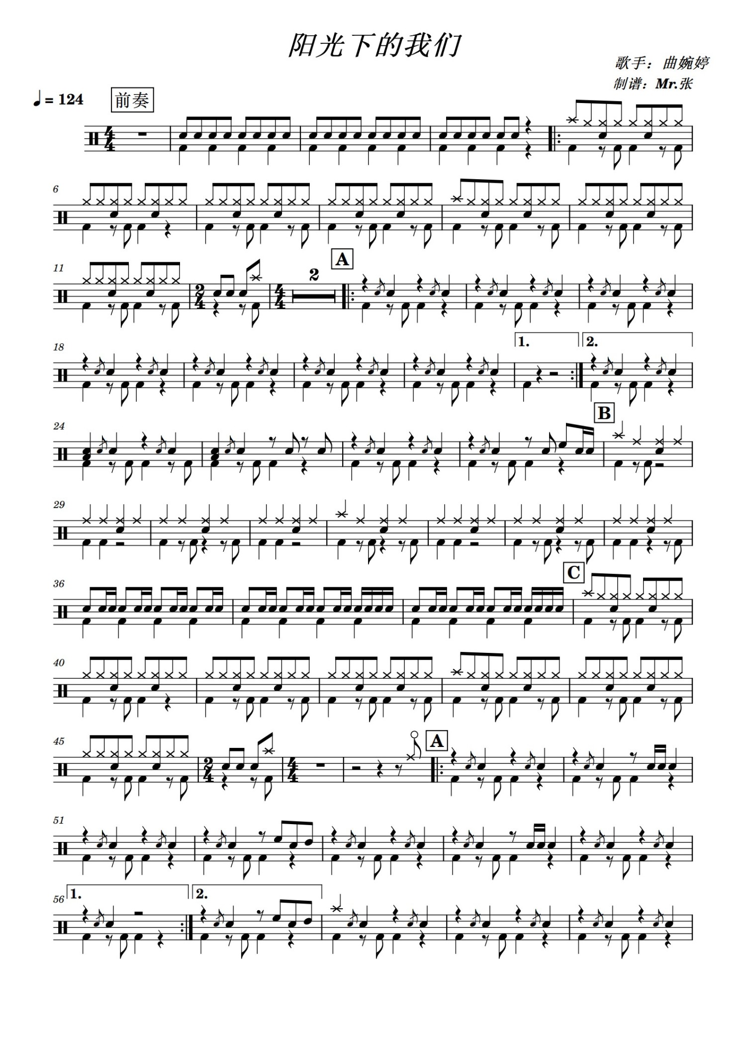 当前位置:琴谱网>架子鼓谱>阳光下的我们