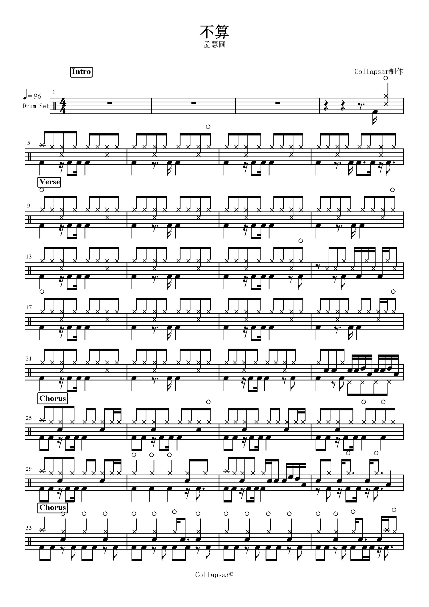 不算鼓谱 - 孟慧圆 - 架子鼓谱