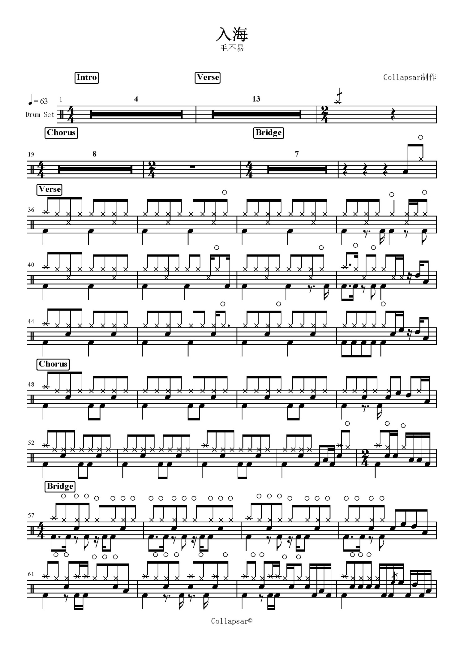 • 入海鼓谱 - 毛不易 - 架子鼓谱第1张