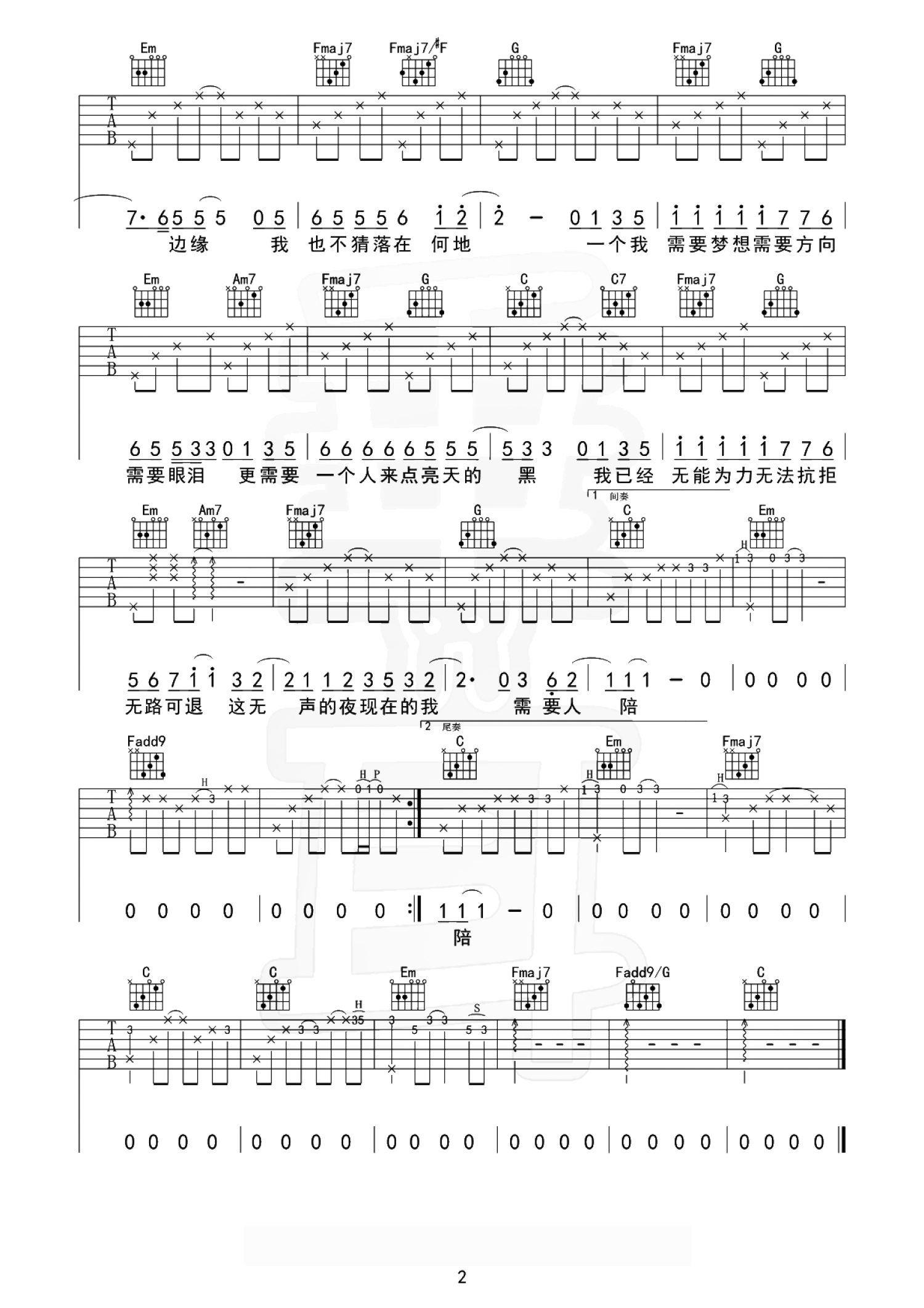 当前位置:琴谱网>吉他弹唱>需要人陪