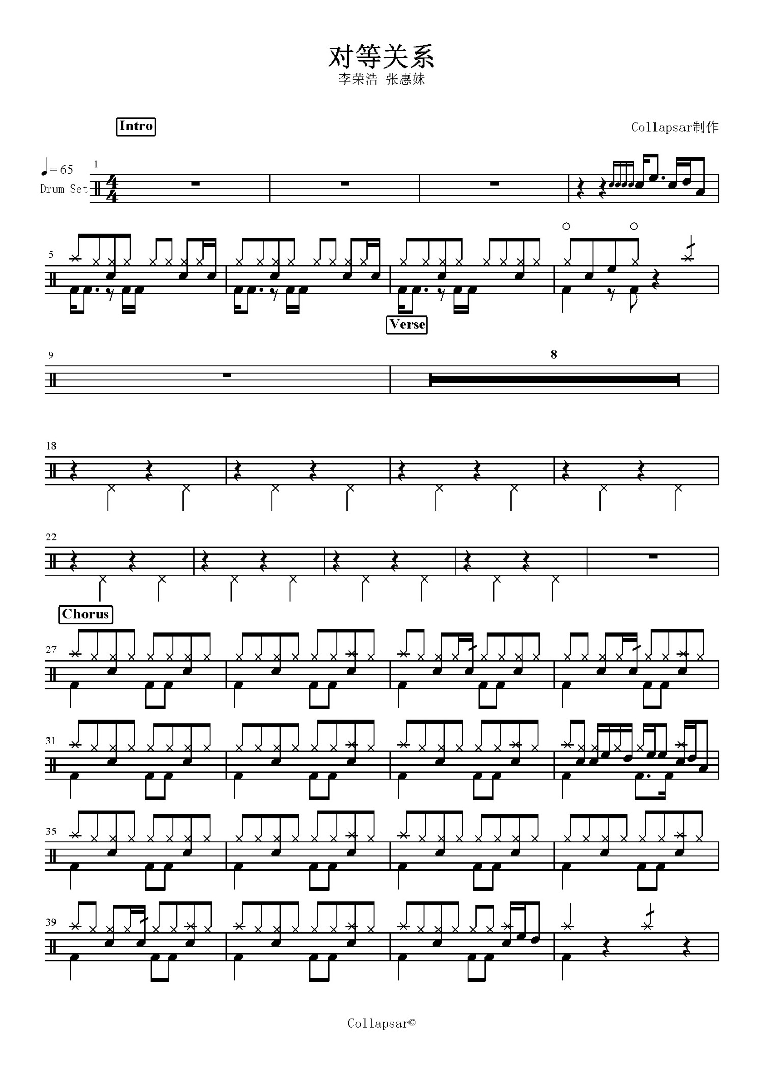 • 对等关系鼓谱 - 李荣浩、张惠妹 - 架子鼓谱第1张
