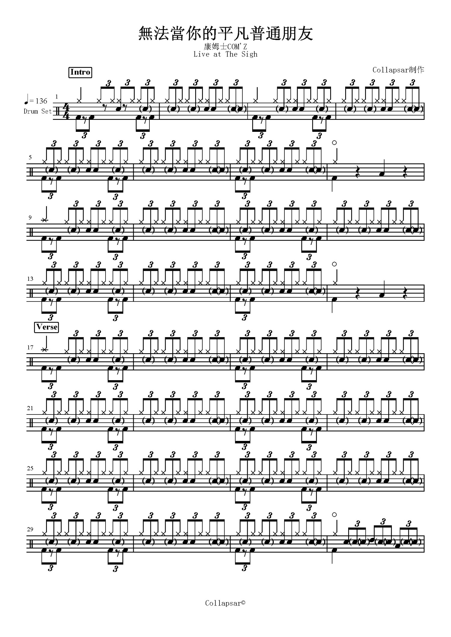 • 無法當你的平凡普通朋友鼓谱 - 康姆士 - 架子鼓谱第1张