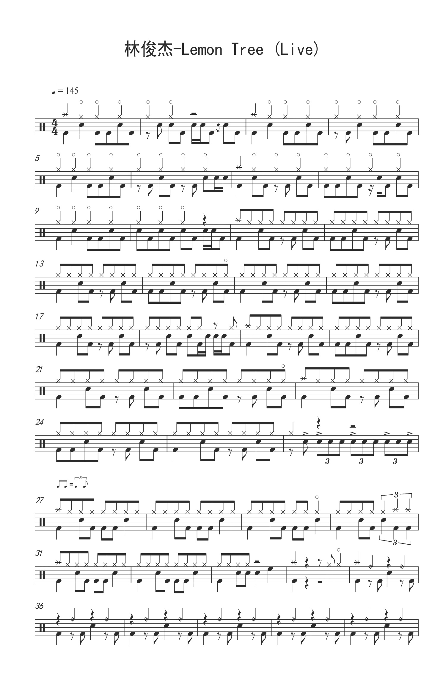 • Lemon Tree鼓谱 - 林俊杰 - 架子鼓谱第1张