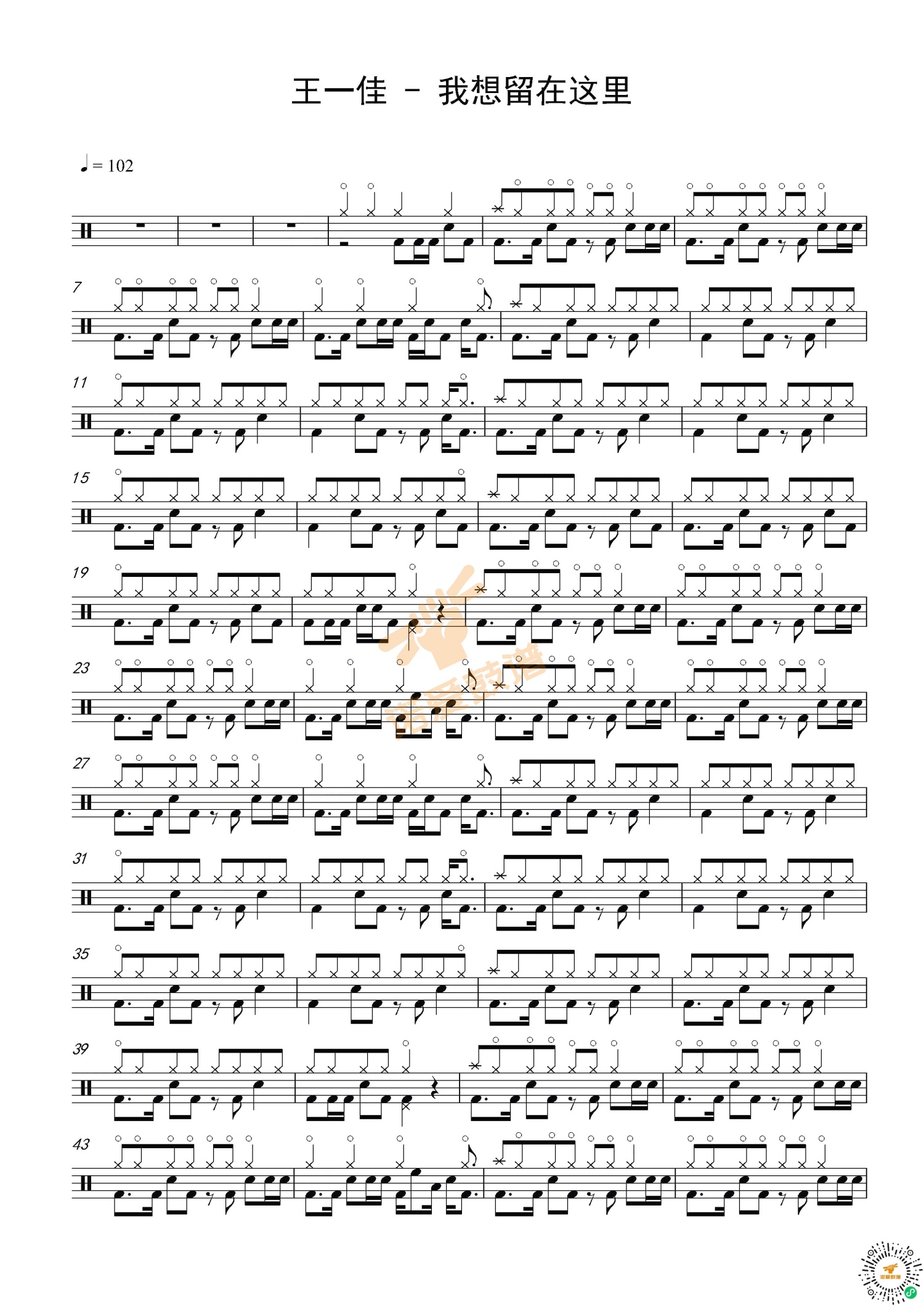 • 我想留在这里鼓谱 - 王一佳 - 架子鼓谱第1张