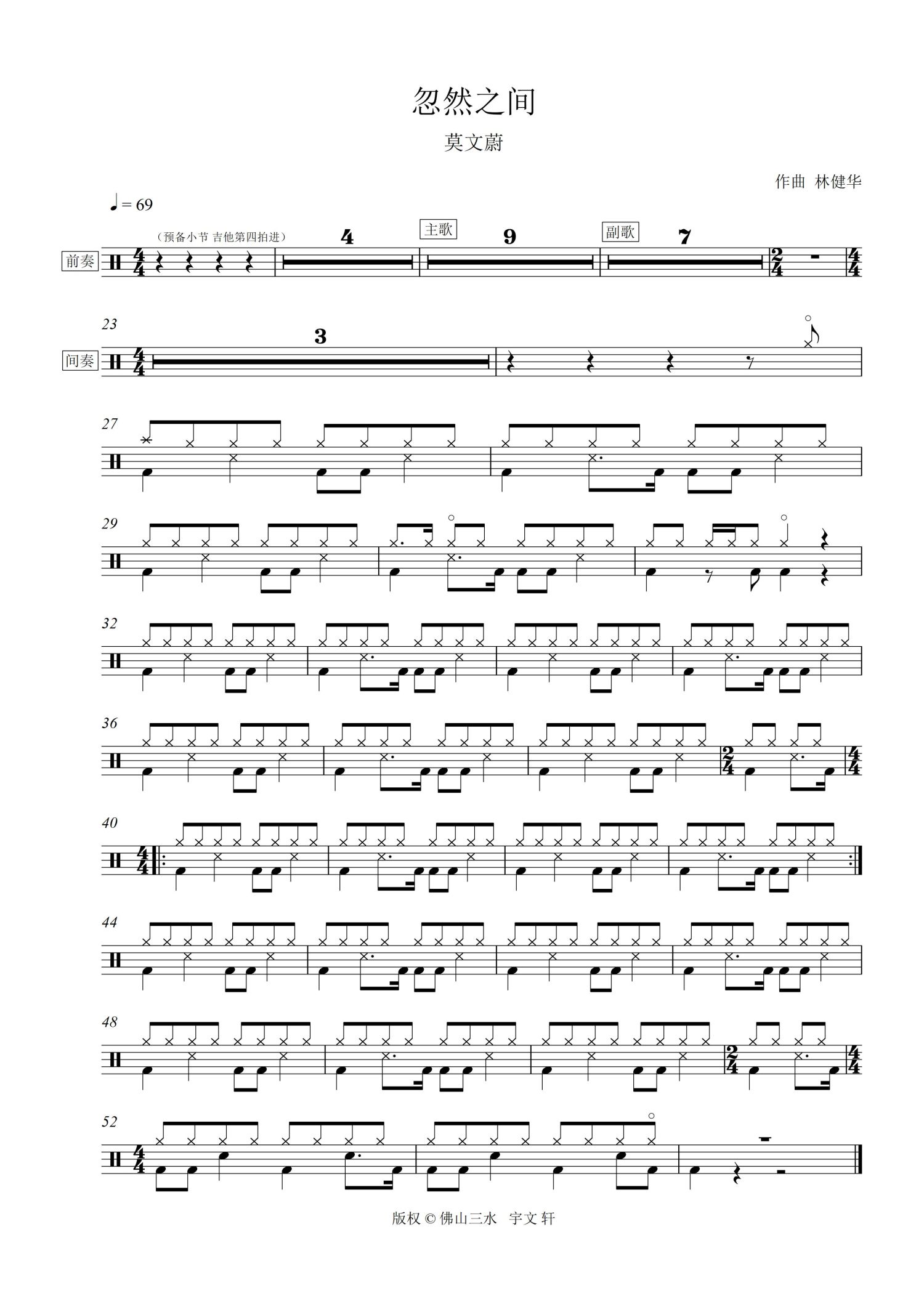 架子鼓谱原调来源:佛山三水 - 宇文轩723 浏览2022-05-11 09:25发布图谱共1页