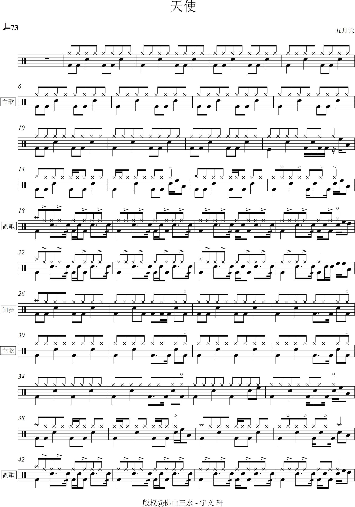 • 天使鼓谱 - 五月天 - 架子鼓谱第1张