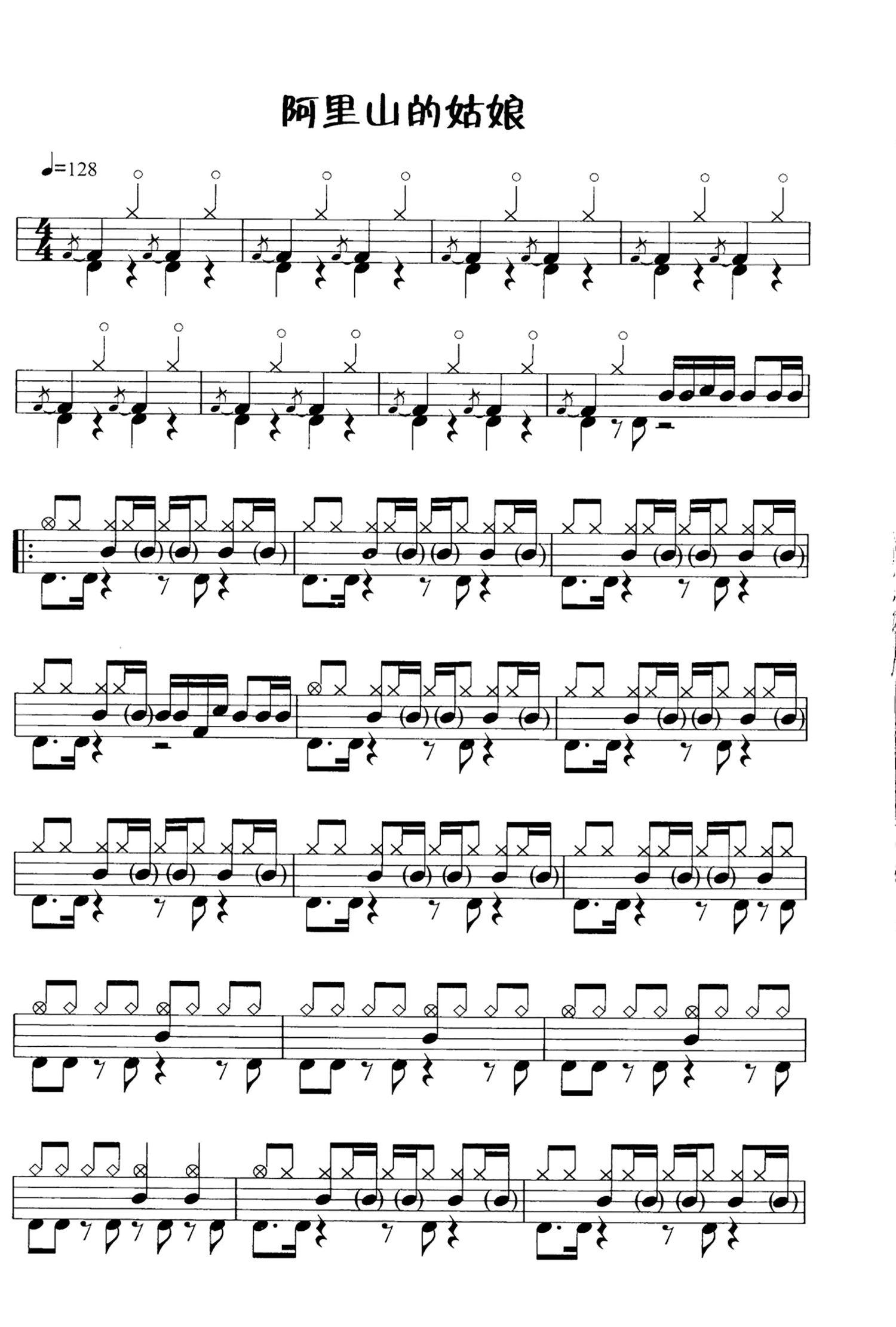 • 阿里山的姑娘鼓谱 - 儿歌精选 - 架子鼓谱第1张