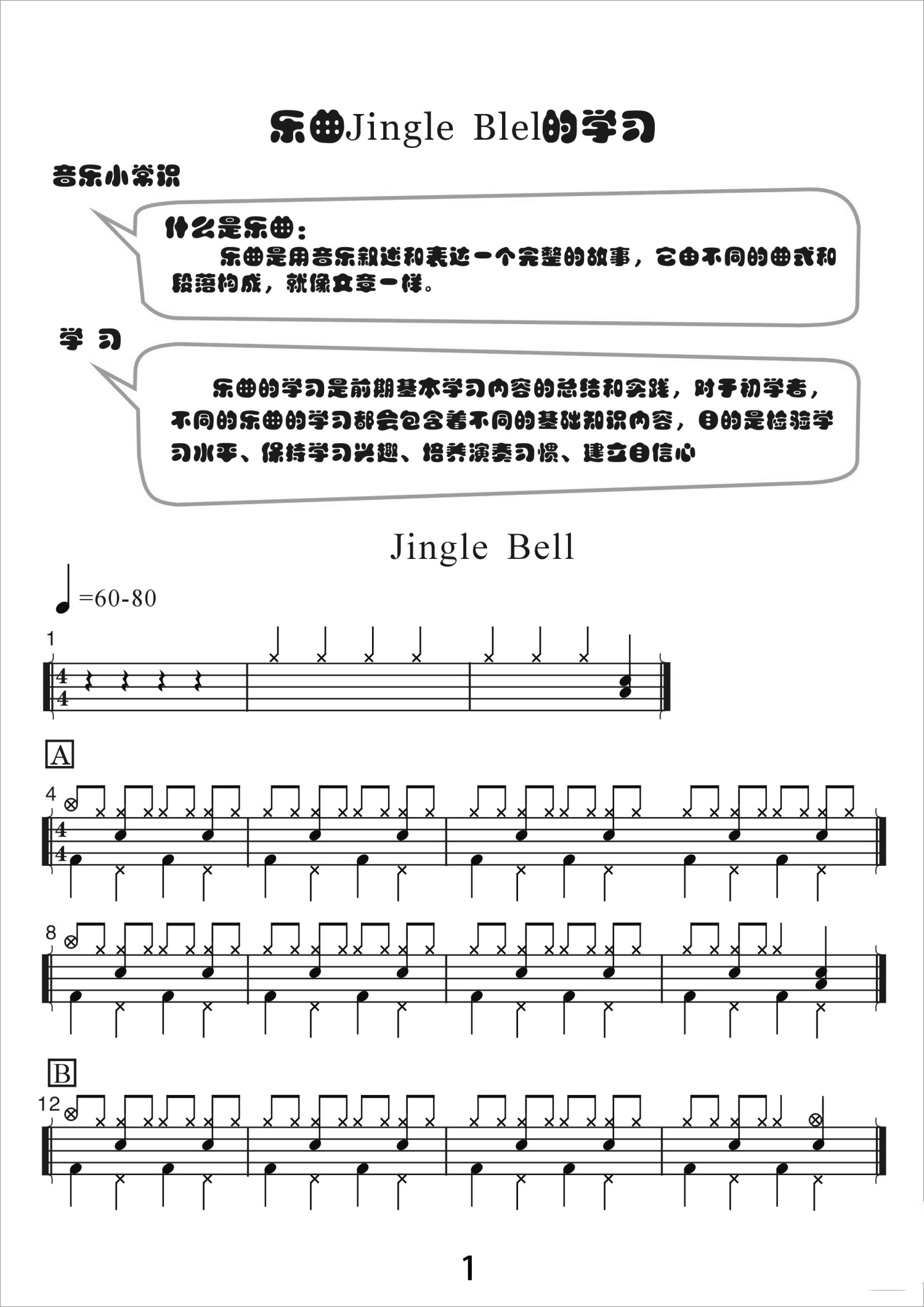 • jingle bells鼓谱 - 儿歌精选 - 架子鼓谱第1张